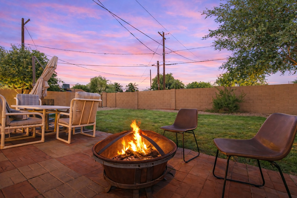 ✨ Enjoy a sun run from this central Scottsdale/Tempe oasis! Enjoy high-speed Wi-Fi, dual-zone AC/heat, and smart TVs. Relax in the bright family room, bonus room, or four comfy bedrooms. Outside, unwind with a heated pool*, fire pit, mini-golf, grill, and covered lounge. Your perfect holiday getaway awaits!