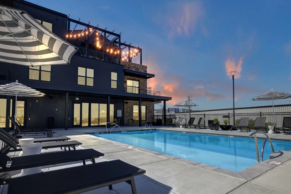 宽敞的绿洲,带泳池、健身房和迷人的城市景观