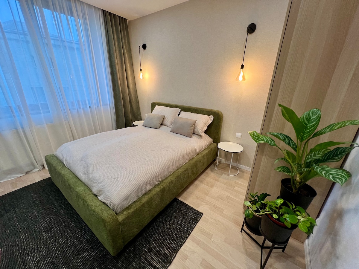 Your new stylish apartment offers comfort stay for up to 2 persons. It is located in a new estate just minutes within downtown. Place is fully furnished (kitchen appliances, wi-fi, Antik Smart TV, etc.) and is ready for your stay. Free parking is provided in designated underground space. Safety of the property and guests is provided by private security company.