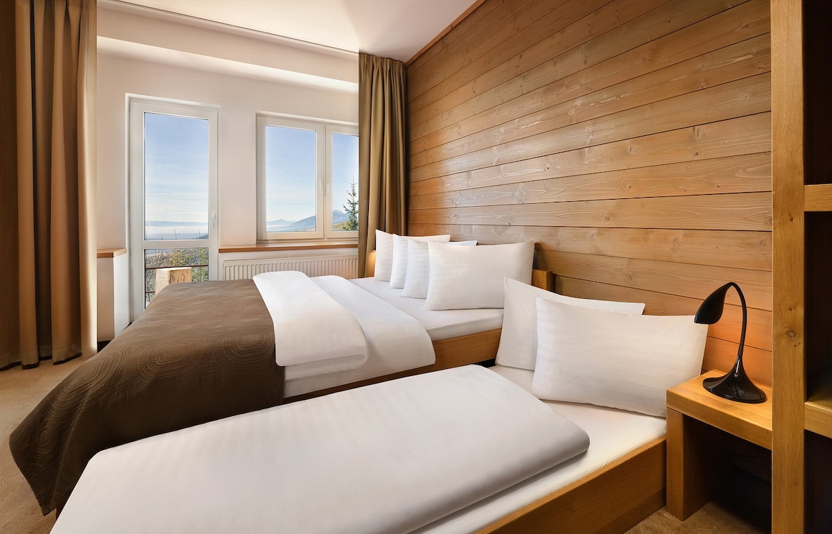 Dvojlôžková izba s výhľadom na jazero je vhodná pre všetkých milovníkov krásnych scenérií. Izba má výhľad priamo na Popradské pleso.