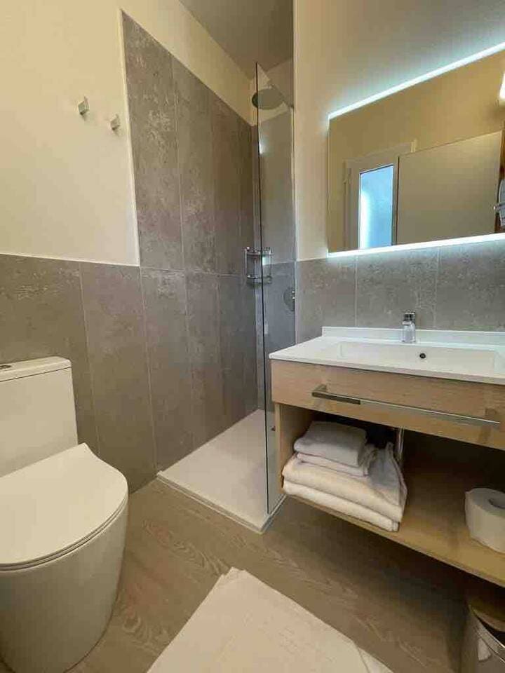Dolcemente Garni Hotel is located right next to the sea, so it offers a beautiful view. Even the nearest beach is only a 7-minute walk away. Deluxe room with in-room bathtub and sea view offers a cozy retreat for 2 guests. It is equipped with a comfortable queen bed, a kettle, a safe, an LCD TV, free WiFi, and storage space with hangers. The bathroom is private. The terrace with outdoor furniture is shared with other guests but provides a marvelous sea view. Breakfast is included in the price.