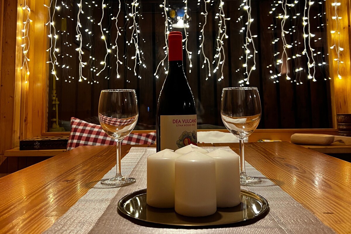 The central part of the Alpine house in the summer season is a large wooden terrace with deckchairs and a wooden tub with hot water (hot-tube), which also operates in winter. Inside the house there is a smaller living area with toilets and two beds on the first floor. A small kitchen allows you to prepare meals throughout the year, and in the summer season, a summer kitchen is also available The alpine house also contains a private Finnish sauna. The house measures 50 square meters.