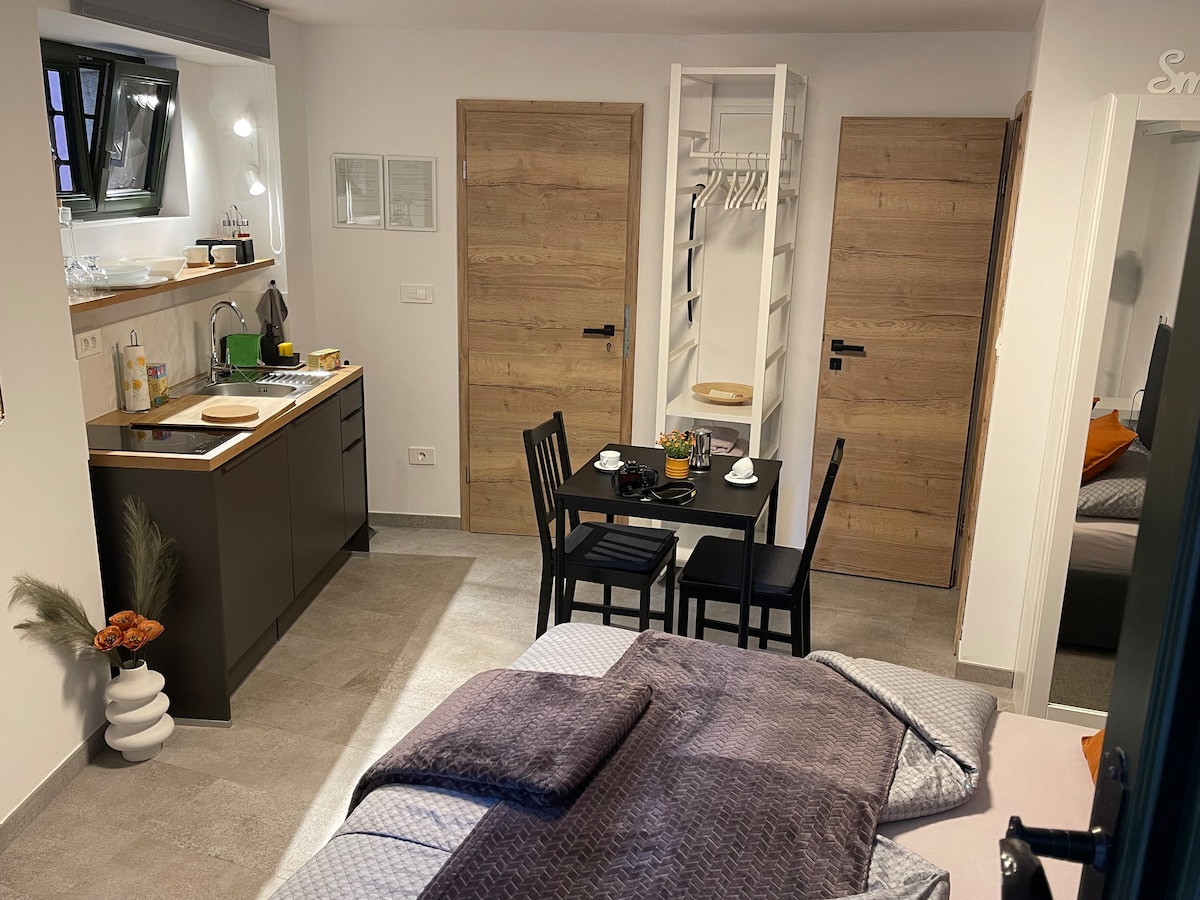 Spacious-This family house can accommodate two guests in a closed room and two guests in an open room. The main rooms have a terrace that is hidden from curious views and offers views of one of the most beautiful places in the world. The spacious living and dining areas are on the first floor and the extension is a kitchen with all the necessary appliances. On the ground floor there is a bathroom and a toilet. The house is restored in a traditional style and retains the amosphere of the place.k