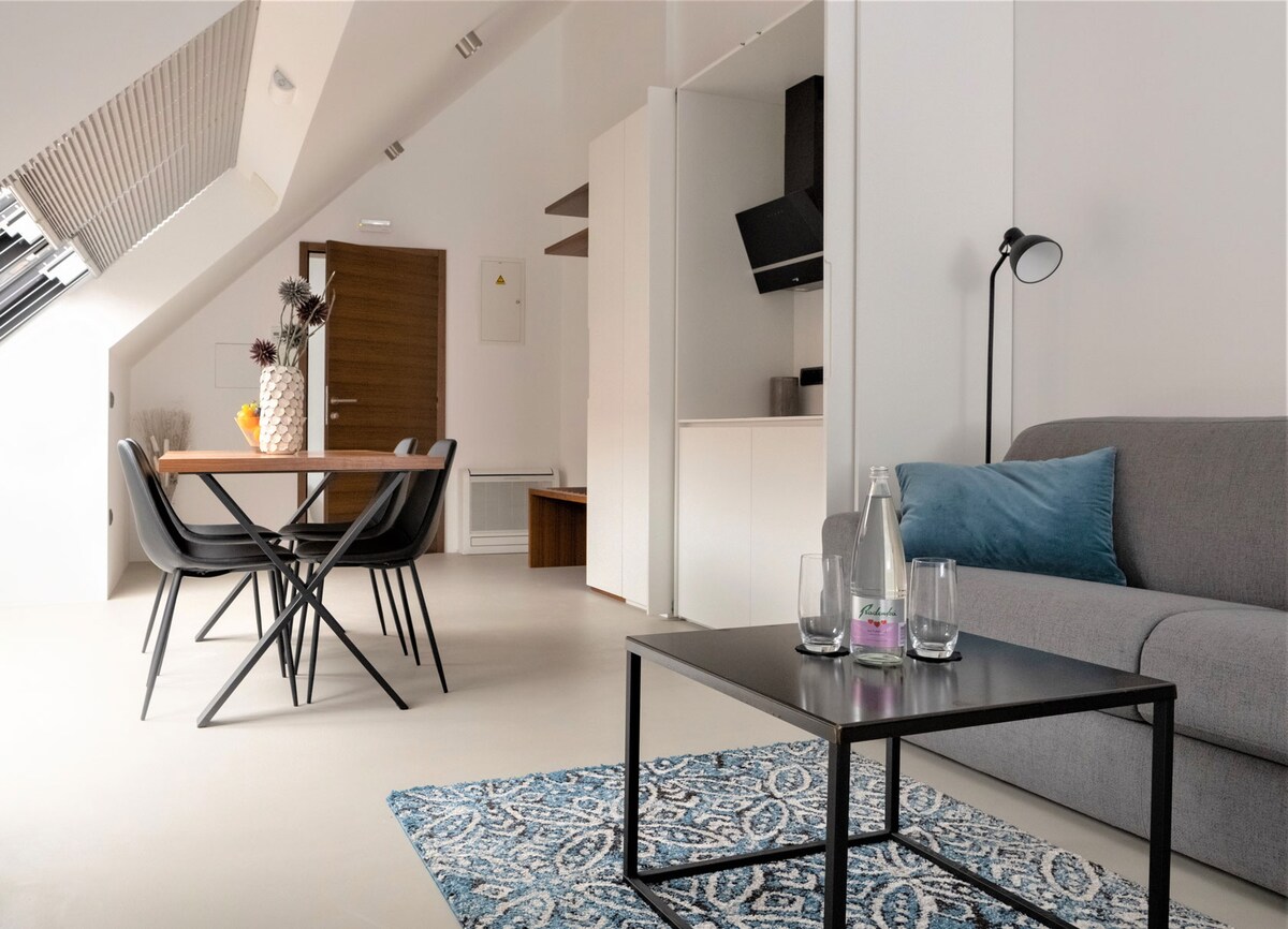 明亮的城市单间公寓,可容纳2人|露台和停车位