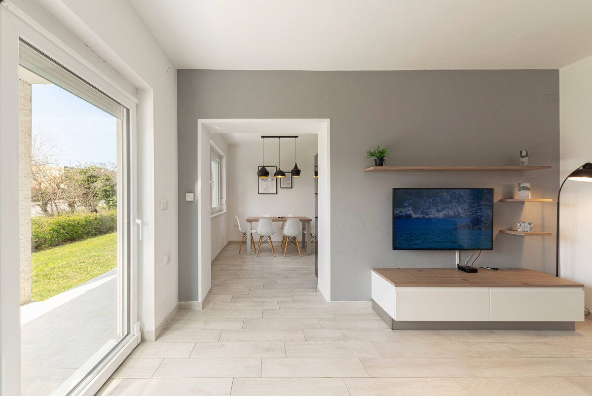 Do you want a spot on the sea, your apartment just steps from the Adriatic Sea? Want to relax in the beautiful garden with rich shadow, while your children play in the garden or swim in the sea in front of the house? Our apartment "Haliaetum" is located in a family villa by the sea, on the walkway to the San Simon beach in Izola. Excellent location, pleasant garden with Mediterranean vegetation, cozy apartment and our desire to feel at home with us, all these are sufficient reasons to spend your holidays, a long weekend or maybe just a day in our apartment Haliaetum all-year-round. The apartment is located in the middle floor (1st floor). It is suitable for up to 4 persons, centrally heated and air-conditioned. Fully furnished apartment includes: entrance with wardrobe, bathroom with shower and washing machine, living room with kitchen, dining table and 4 chairs, Led TV and a couch (130 x 190 cm) for two persons, bedroom with sea view and two beds We assure you that you will be excited about our extensive garden. In the shade of our pine trees, cypress and laurel bushes you will be delighted to use: table and 4 chairs, solid wooden deckchair along with sunbathing cushion and a folding deckchair, outdoor shower, fitness area among the cypress trees, swing on a pine, direct access from the garden to the beach, gas grill, free parking in front of the house, free Wi-Fi internet in the apartment and in the garden. Our house is certainly ideal also for families with children. Every moment you can "jump" in the apartment directly from the pebble beach without tiring walking or driving. Just park your car in front of the house and enjoy your vacation.