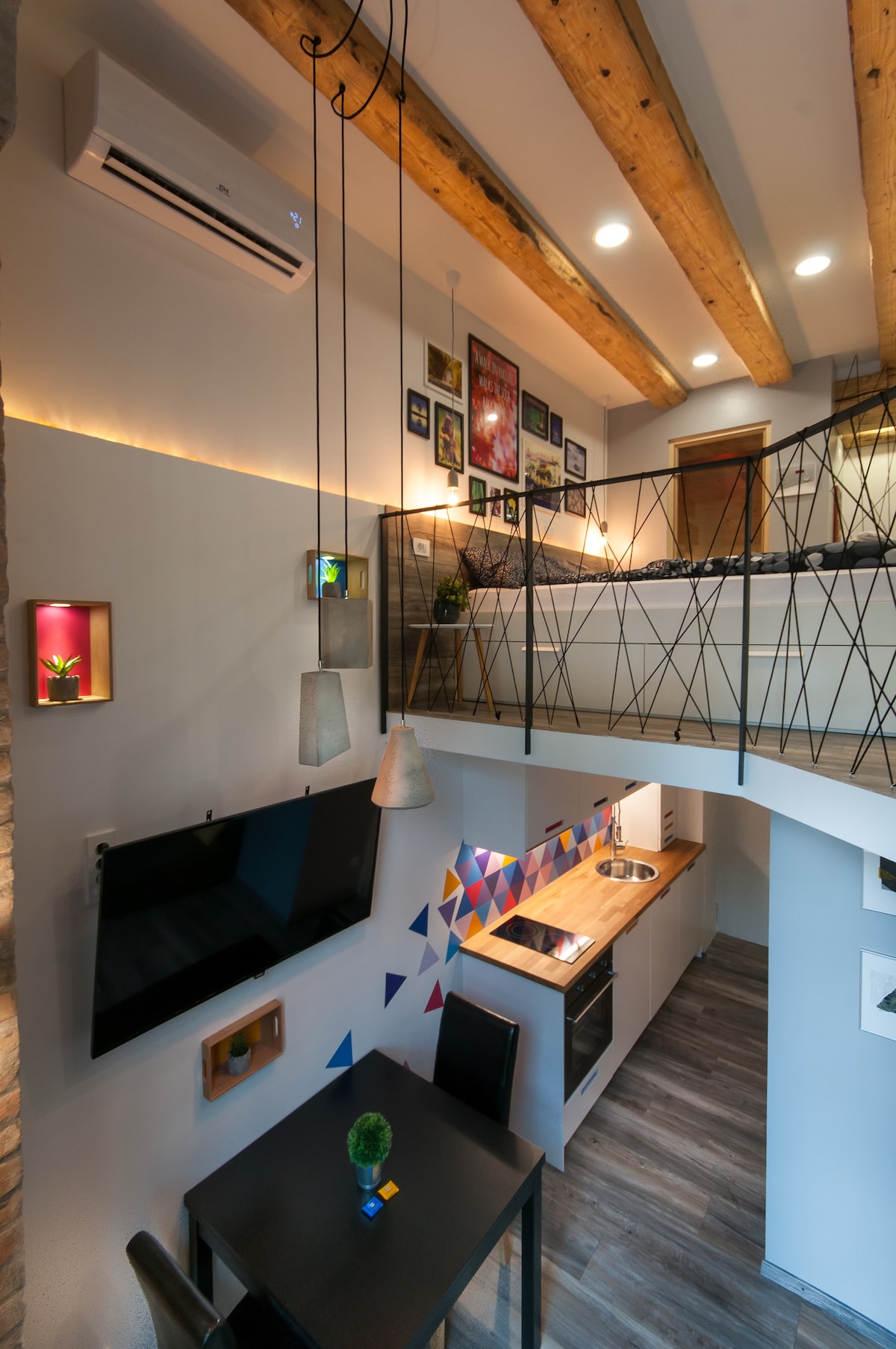 This is small apartment in the 4th floor of historic building (no elevator). Apartment isn't big, but has a smart design and is located in the central part of pedestrian zone - this is also the most prestigious location of Old Ljubljana. For a fair price you are getting exclusive location with gorgeous views over Ljubljana's heart. This is for everybody who appreciate clean apartment, central location, bright spaces, view on the city castle. 9. Parking costs 15€/day. Mind it has a loft bed.