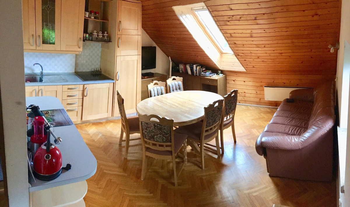 Renovated in 2010 (from former hay barn) private apartment adjacent to 100 year old family home. Facilities are modest and decor is simple, but it is clean, comfortable and excellently located very close walking distance to Bled town centre and lake.