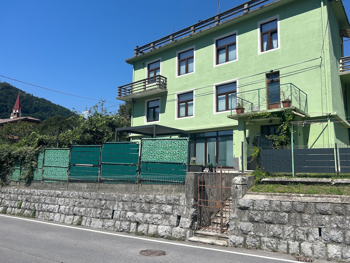 In a turn of the river Idrijca you will find our apartment. The apartment is newly remodeled, although you will still find some old details and the typical Idrian Lace. The apartment has a living room, two bedrooms a new kitchen and a bathroom with shower. The apartment has a new air-conditioning which will make your summer stay pleasant. The apartment is all equipped, also towels and bedlinen are taken care of. You can relax in our garden and the pebble stones beach of the river Idrijca