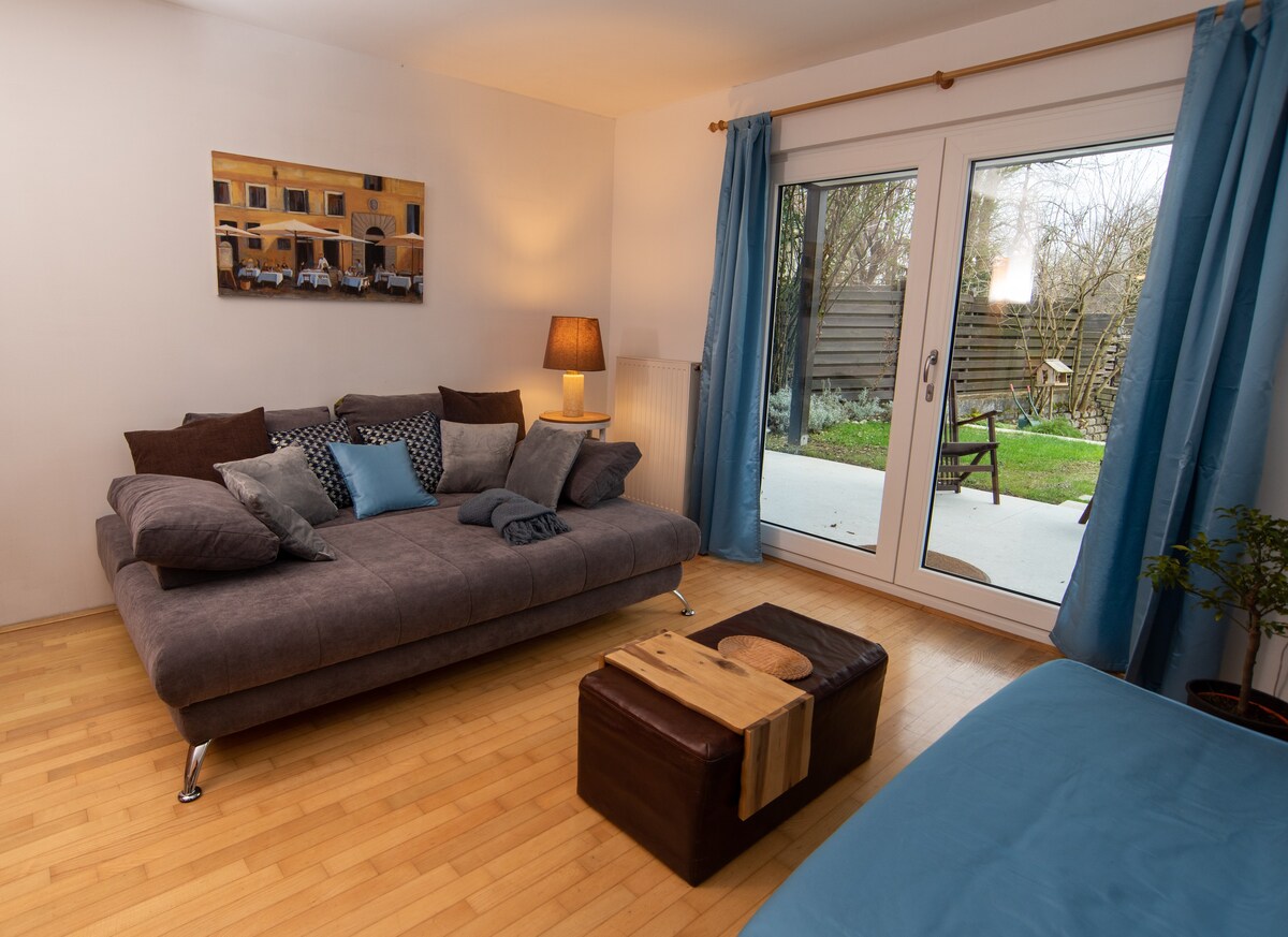 Hey there! Thanks for checking us out. Pipa's Place is a freshly renovated 2 bedroom apartment in close vicinity to Ljubljana's city centre. If it was a person you could describe it as very friendly with a touch of sophistication, with a welcoming soul and modern spirit. The lush interior is enveloped with a 1000 sq m garden where you can take a stroll, have a barbecue or just sit under a 100 year old yew tree and plan your trip ahead - you'll probably want to stay at Pipa's place though.