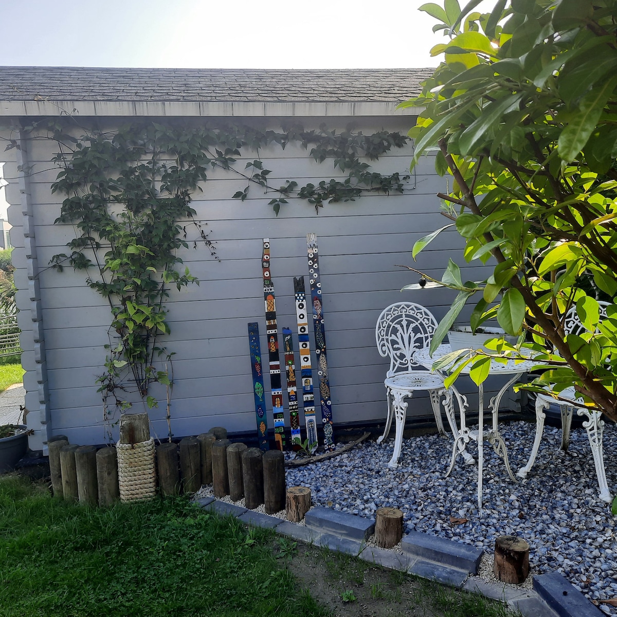 Chalet voor 4 personen. Vlak aan het strand 🏖 Zonneluifel, , loungeset met kussenbox, picknick tafel, ronde tafel met 4 rotan stoelen. Overkapping met schuifdeur 1 dubbel bed en twee eenpersoons bedden. Groot bed heeft een tweepersoons matras met eenpersoons dekbedden. Babybed aanwezig. Niet rokers. Lakens en handdoeken zelf mee te brengen. Kan ook mits vergoeding van 15€ per persoon door ons voorzien worden. -> bij boeking mee aanvragen. Min. 2 nachten. Aankomst vanaf 13 u,vertrek voor 12u