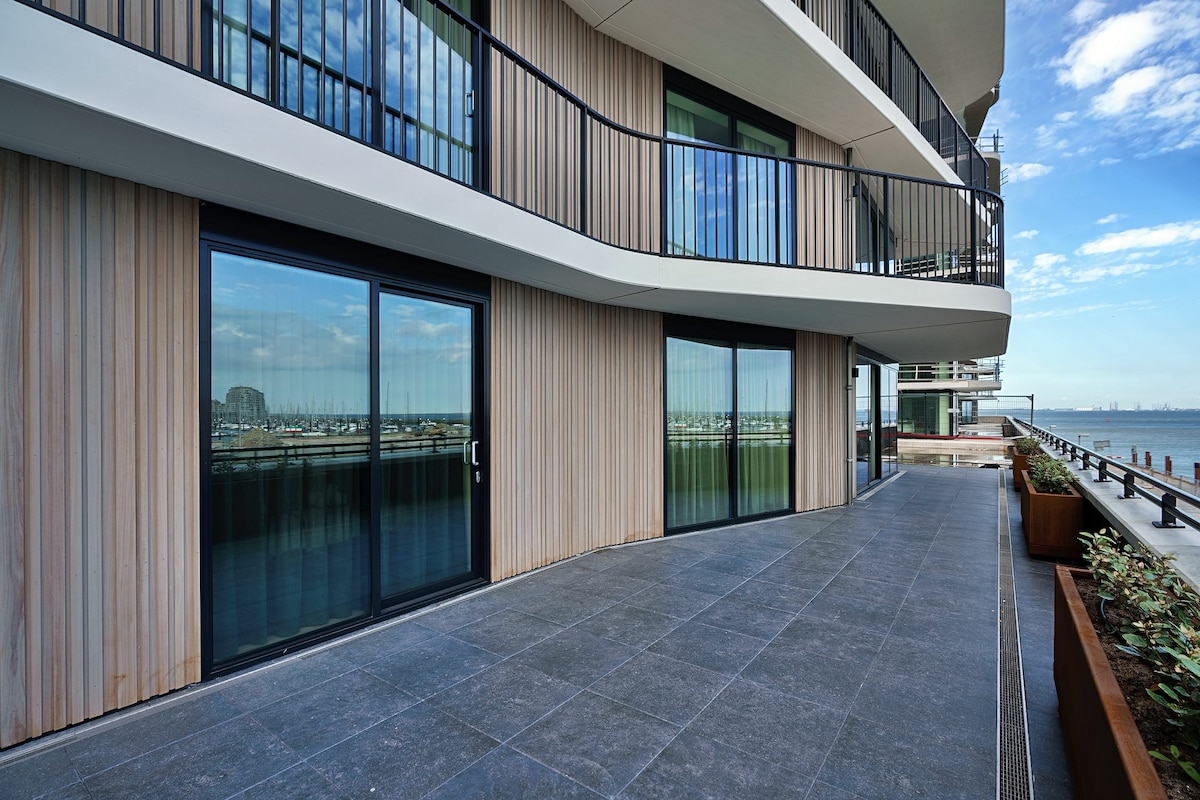 This brand new modern apartment on the 5the floor (102m2) has a unique view on the sea, the beach and the harbour of Breskens. From this apartment you can enjoy both a magnificent sunrise and a unique sunset. The apartment building has a direct access to the beach. The very spacious terrace of 35m2 surrounds the apartment completely and allows you to always find the best spot to enjoy the moment of the day. An appartment that provides you with an instant vacation feeling.
