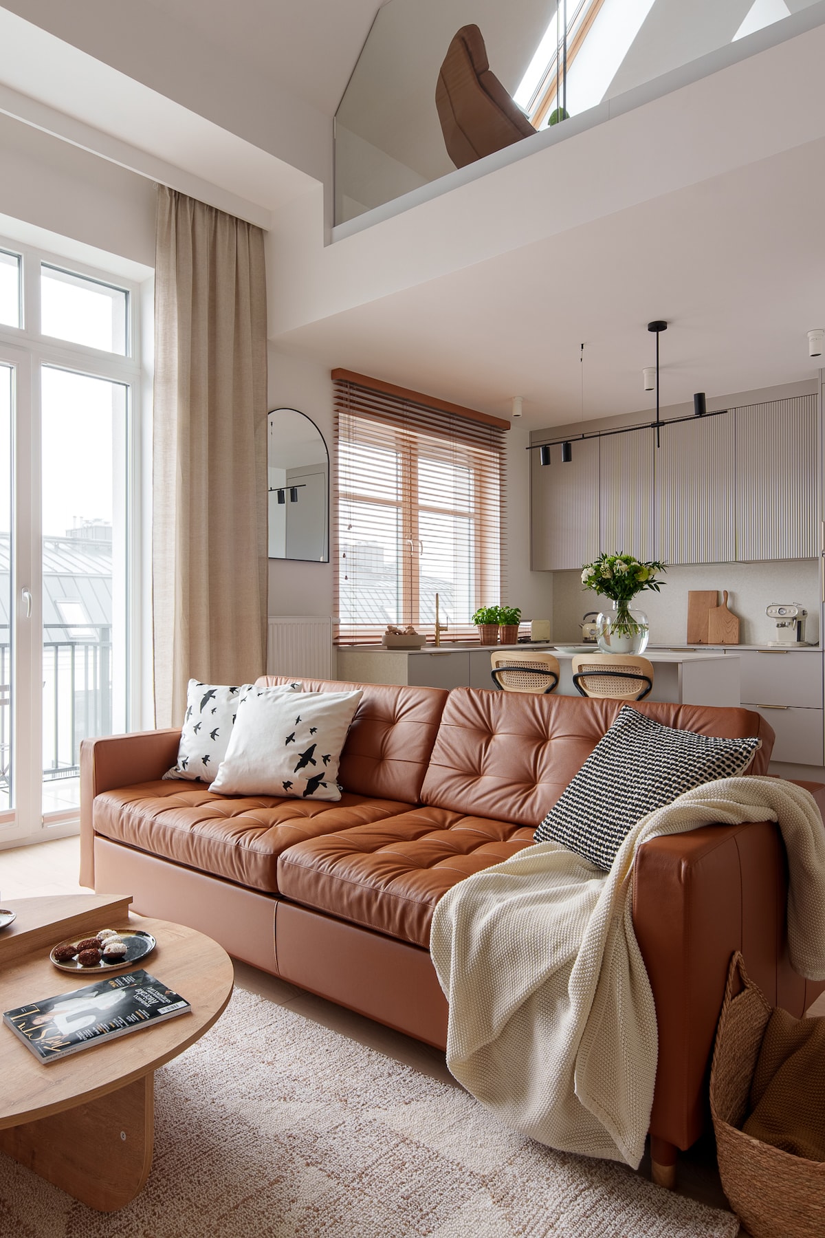 Studio o wysokim standardzie, 28 m² z prywatną łazienką, blisko centrum. W okolicy stacja paliw i market. Studio składa się z przestronnego salonu z aneksem kuchennym oraz łazienki. W salonie narożnik z funkcją spania (po rozłożeniu 200 x 140 cm) oraz elegancka pościel z pierza w kolorze ecru. Nowoczesne wyposażenie: telewizor 50", płyta indukcyjna, komplet garnków, lodówka, pralka, suszarka do włosów. Dodatkowym atutem jest balkon, idealny do relaksu.