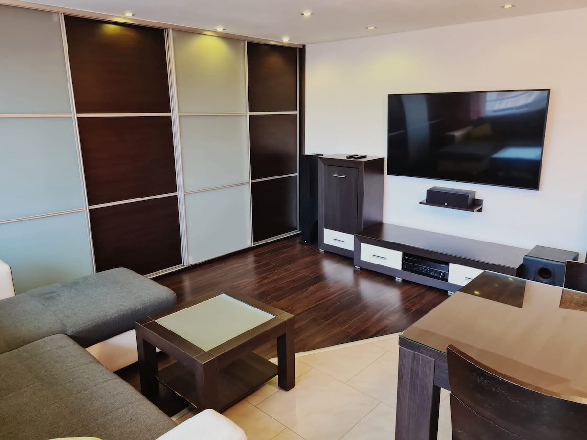 Mieszkanie w doskonałej lokalizacji w centrum miasta. Nowe budownictwo. Lokal w pełni wyposażony (lodówka, pralka, płyta indukcyjna, mikrofalówka, piekarnik, 55" TV, WiFi, aneks kuchenny ze wszystkimi sprzętami do przygotowywania i spożywania posiłków). Na dziedzińcu plac zabaw. Parking z dużą liczbą miejsc parkingowych, płatny w godzinach 9-17 od poniedziałku do piątku. Poza tymi godzinami oraz w weekendy bezpłatny. Zapraszamy serdecznie. Przy dłuższych pobytach oferujemy atrakcyjne rabaty.