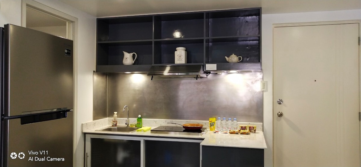 Enjoy your stay in this cozy and stylish studio unit at Mesavirre Garden Residences, located at the heart of Bacolod City. The unit is equipped with the following that you can fully utilize! - 50-inch smart tv with Netflix and HBO GO - WiFi (unlimited) @300mbps - air condition - refrigerator - rice cooker - electric kettle - electric stove - shower heater - bidet - kitchen utensils and tableware - iron - hair dryer - slippers - welcome kit - honesty store - card and board games