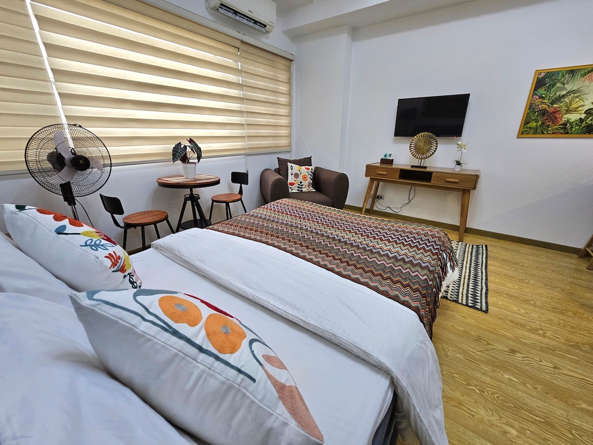 Our unit is situated in the heart of Baguio City. You can explore attractions such as 📍Baguio Cathedral, SM City Baguio, Session Road, Burnham Park, Night Market and nearby points of interest. It is fully furnished bachelor-type condominium unit with a cozy balcony that offers a perfect spot for sipping your morning coffee. It comes equipped with appliances, including cookware, dining ware, and linens, ensuring that you have everything you need to make your stay as comfortable as possible.