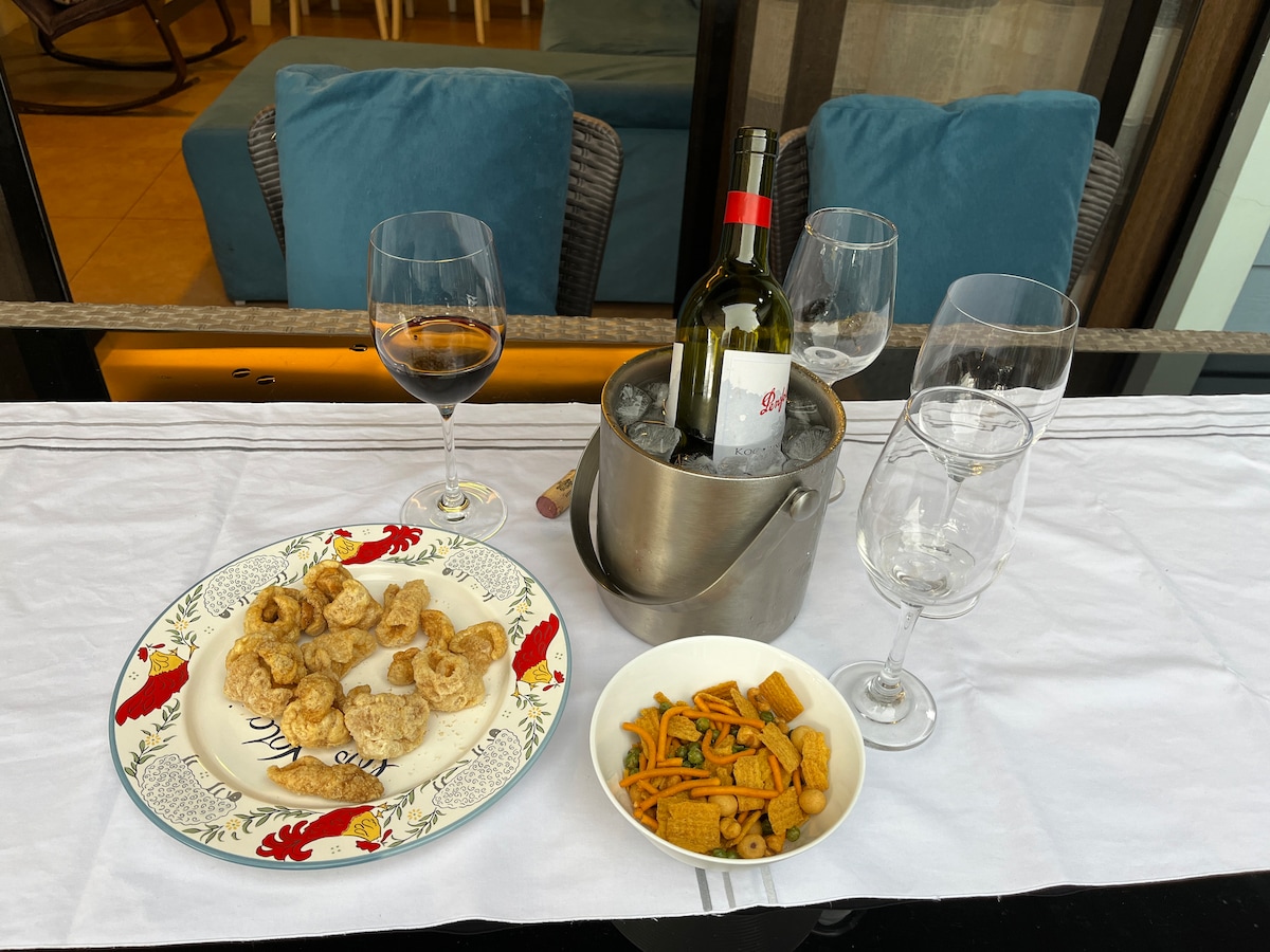 Enjoy mountain views and crisp fresh air in this cozy, stylish and charming home 10 minutes from restaurants and attractions such as Camp John Hay, Mines View Park, The Mansion House and others. Perfect for families and groups of friends, this pet-friendly and wheelchair-accessible home offers an indoor fireplace, 2 outdoor fire pits, 4 bedrooms with bathrooms, a full kitchen, alfresco dining, front and back yards; cableTV, karaoke machine, & fast internet for those who wish to work from home.