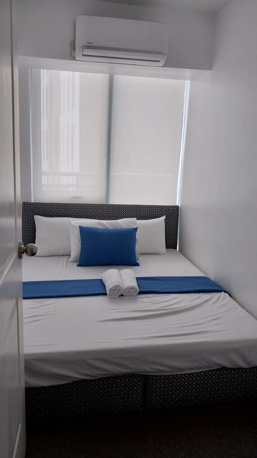 Forget your worries in this spacious and serene space. Treat yourself to a stay at this beautiful modern yet minimalist unit all to yourself with a city view balcony. Rest in a comfortable queen size bed plus an available sofa bed to enjoy. Explore the iconic man made beach among other amenities. All these in a very convenient location neighbor to SM City Bicutan Mall, and close to NAIA Airport