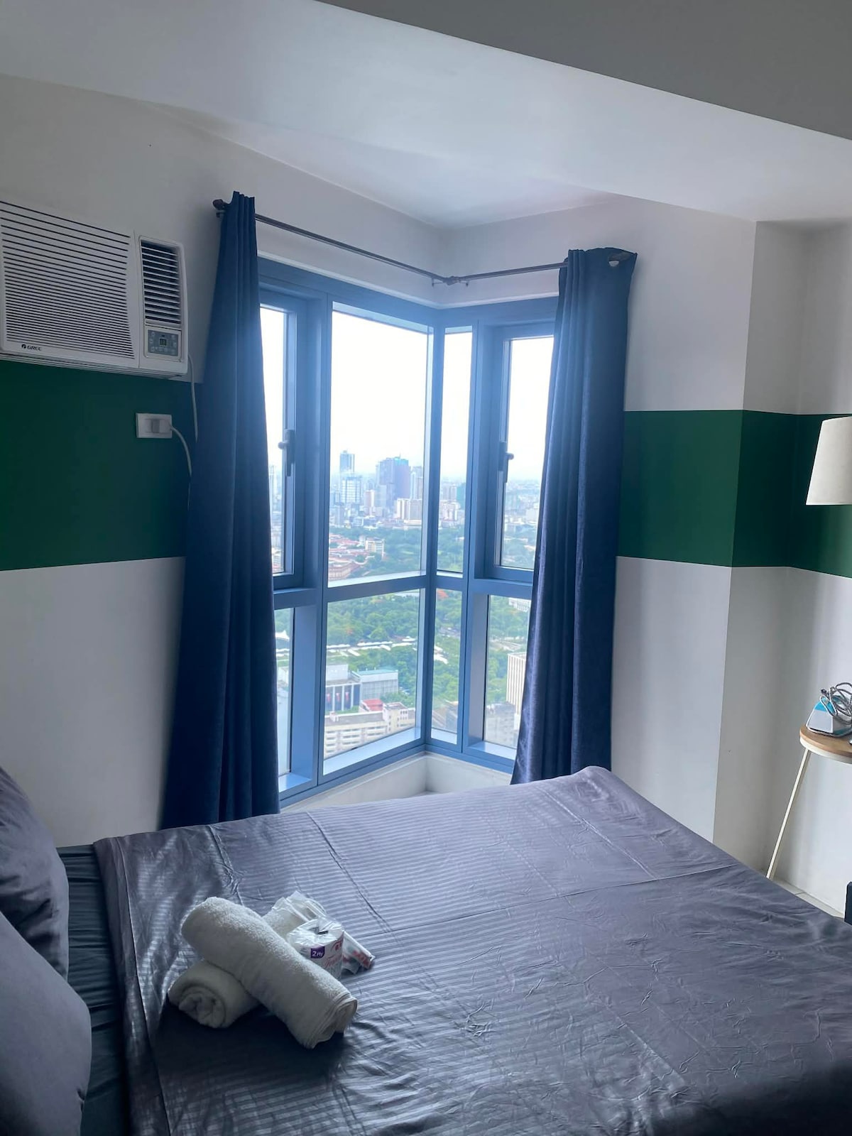 Thoughtfully designed with a modern touch, this cozy 43rd-floor studio offers comfort and convenience for travelers, couples, or remote workers. Enjoy peaceful mornings and restful nights above the city skyline. • Comfy queen bed with fresh linens • Equipped with iron and hair dryer for your convenience • Clean and cozy space for a relaxing stay • Near Robinsons Place, Intramuros, and Luneta Park • Located right across the U.S. Embassy Manila