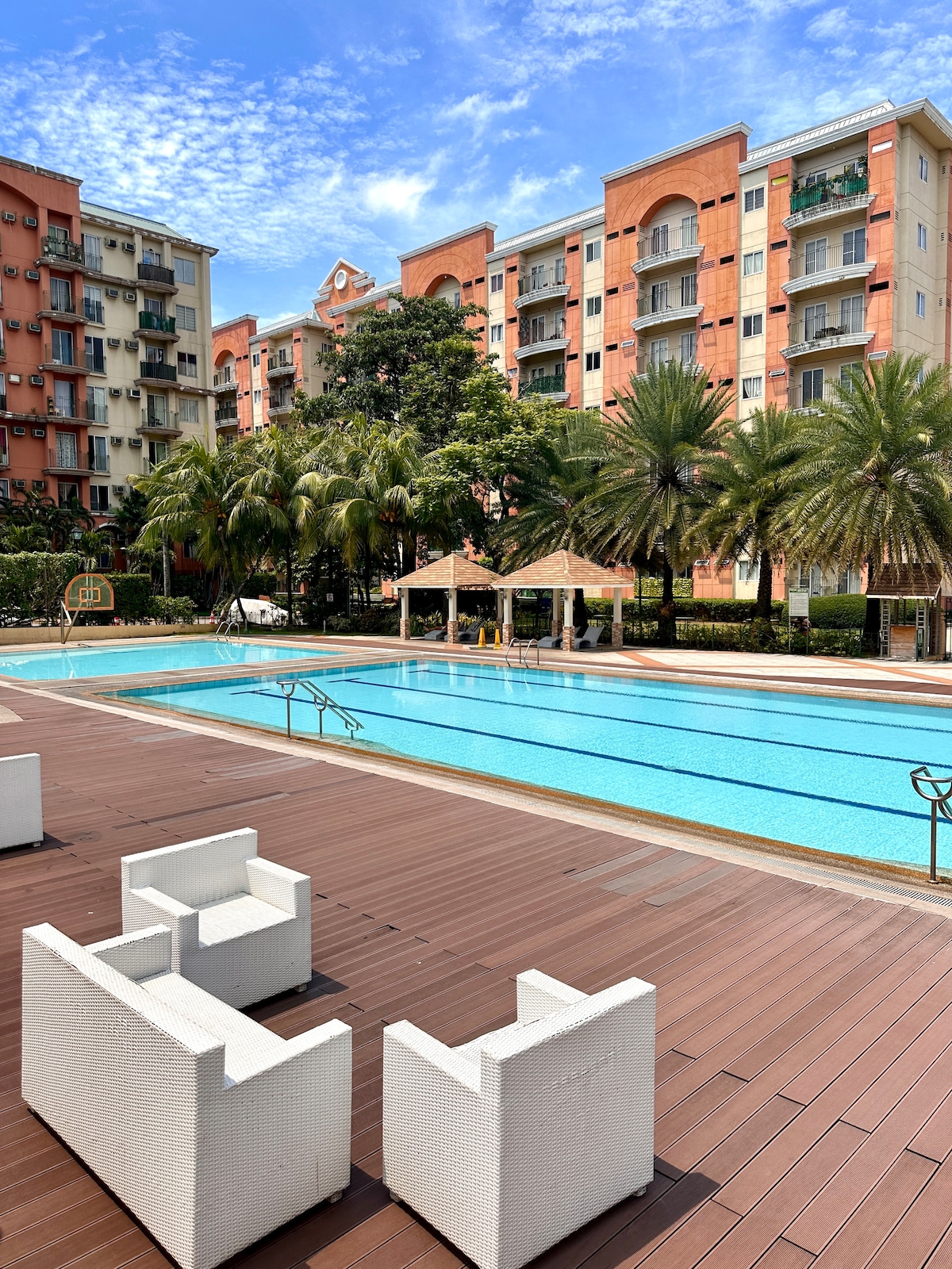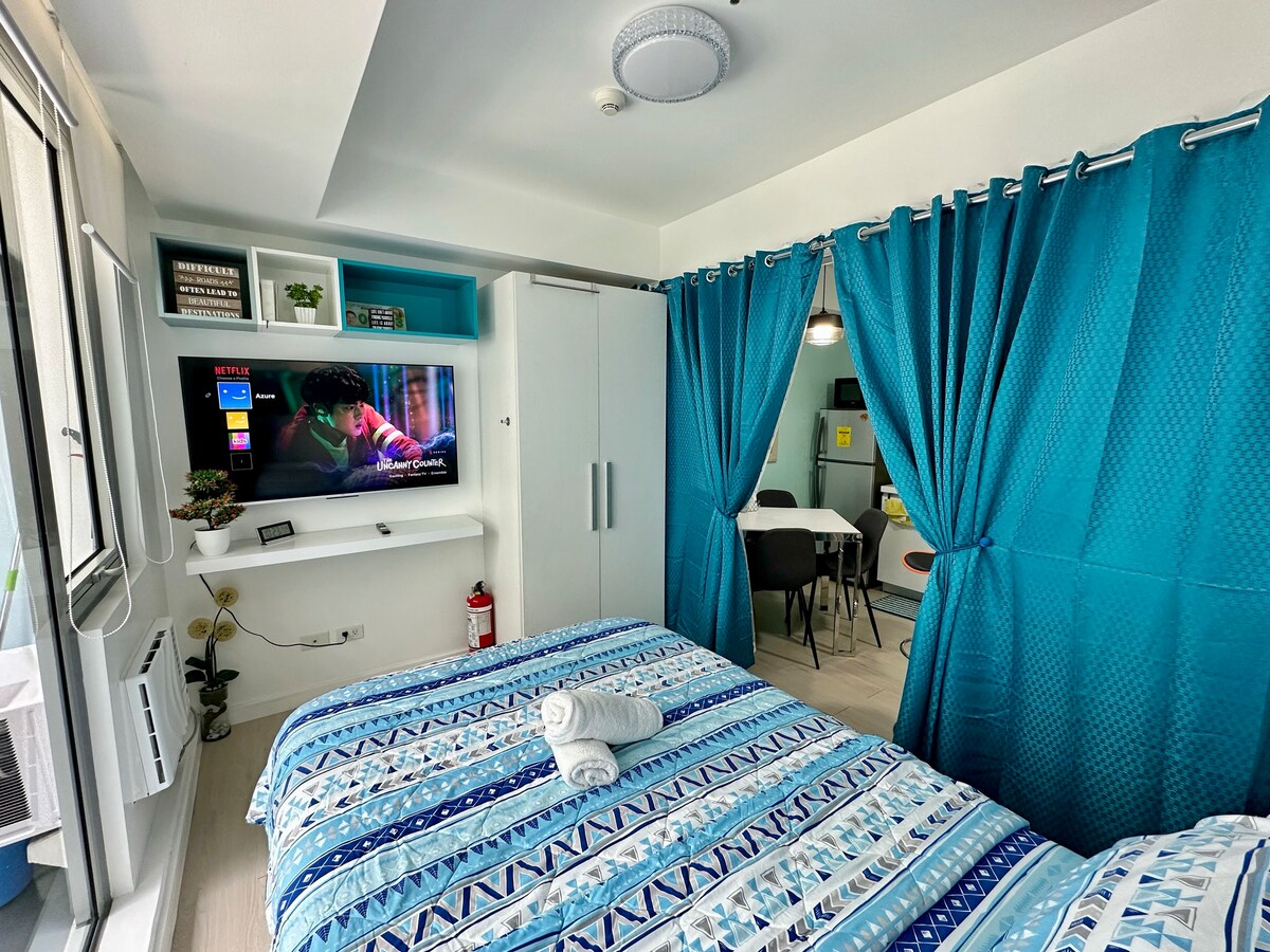 Working remotely (w/ a 300mbps wi-fi) or wanting a staycation (w/ Netflix on a 50" tv)? Worry no more as our cozy 1-BR haven in Azure Urban Resort Residence, the first ever large-scale man-made beach paradise in Metro Manila, can cater to both needs! Located just 13km away from NAIA airport & just 700m away from SM Bicutan Mall, the resort boasts in its amazing views and world class amenities such as white sand man-made beach, wave pool, beach bar, spa, & children’s playroom, to name a few.