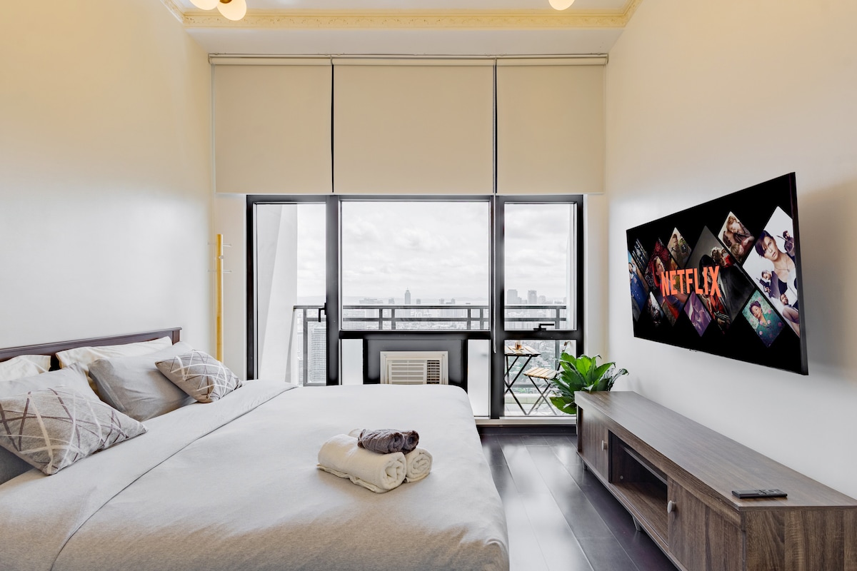 MABUHAY! Discover the heartbeat of Makati from our central condo! Spacious room with 2 balconies offering breathtaking city skyline views from the 62nd floor in one of the tallest buildings in Manila. Enjoy entertainment on large TVs. Dive into hyper amenities, including an infinity pool, lap pool, and gym. Impeccable comfort and cleanliness guarantee a memorable stay! Space managed by MR Cactus MNL.