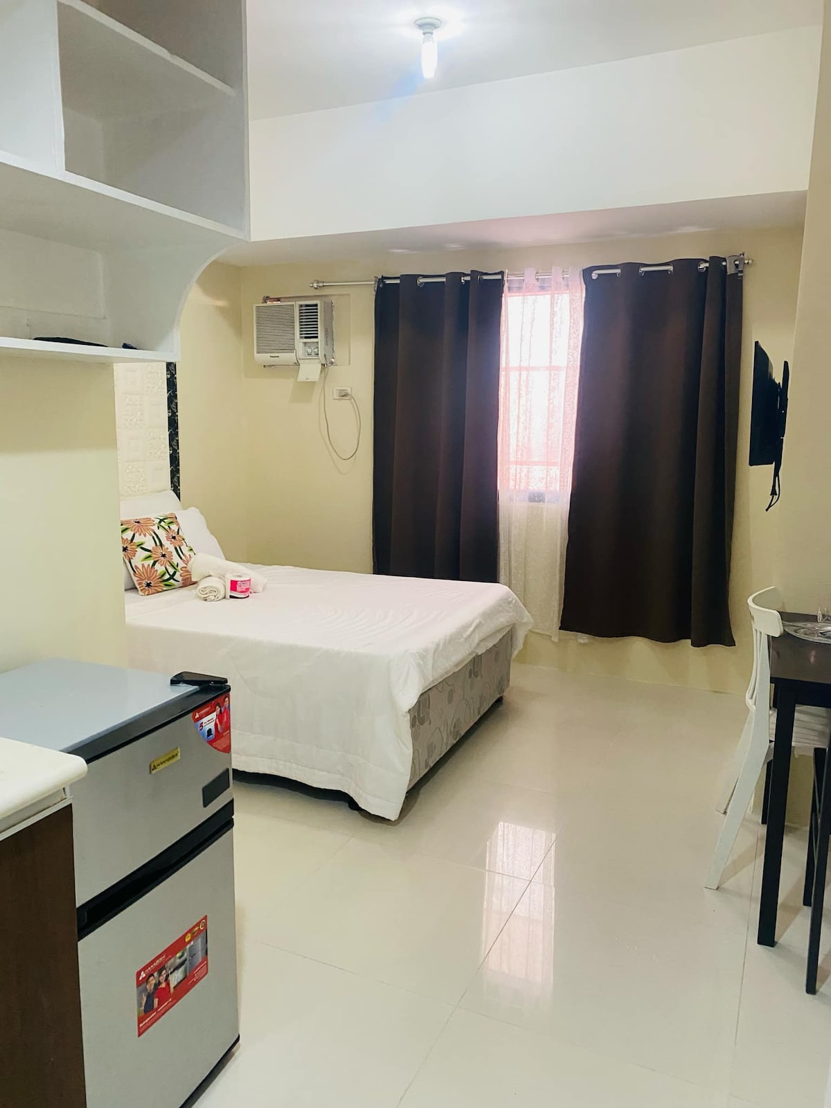 Relax with the whole family at this peaceful place to stay. 🏡 📍 Located inside a mid-rise condominium along Service Road, Campville, near Festival Mall VTEX (Alabang), FILINVEST Ideal for solo travelers, couples, or short stays. 🛏️ Studio Type Unit Includes: • Open-layout studio room • Bed, private toilet & bath • Air-conditioned • Wi-Fi available ✈️ NAIA Terminal 1/2/3 :15-17km 🚗 Accessible via East Service Road, with easy routes to NAIA, Makati, and BGC.
