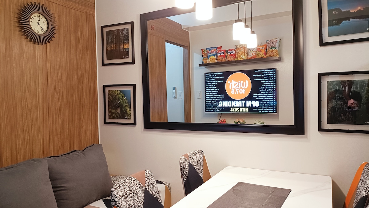 Experience style and convenience in this modern BGC studio! Just a 2-minute walk to Venice Canal Mall, it’s perfect for work and leisure. Enjoy a hidden pullout queen bed, an expanding table for dining or work, and an 84” projector for a cinematic experience. Steps from cafes, groceries, and restaurants, everything you need is within reach. Whether you're unwinding, exploring, or working remotely, this cozy retreat is the ideal staycation spot! 🎬🎮✨