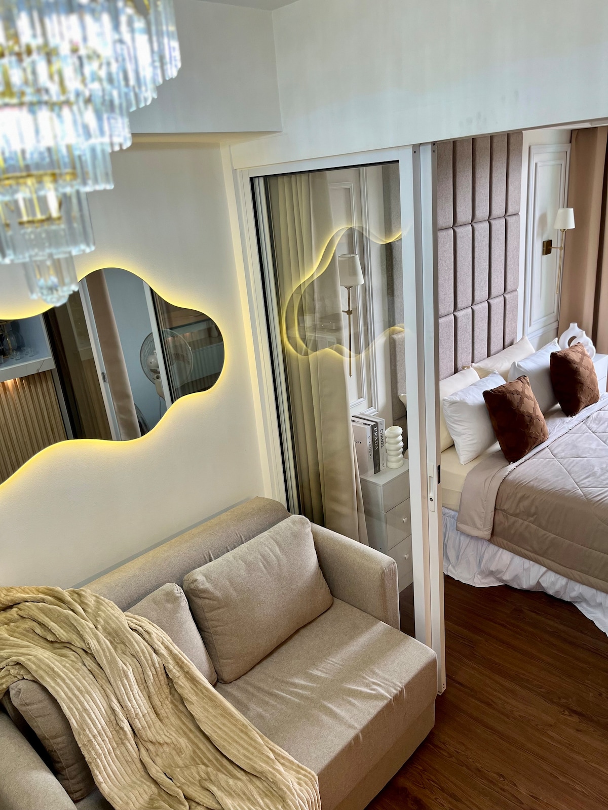 Escape to a high-floor suite with breathtaking BGC skyline views, cinematic JBL surround sound, and a 55-inch Full 4K Smart TV with LED mood lighting—your ultimate movie night haven. Take in the scenery with high-grade binoculars, then sink into the ultra-comfy Emma® Cloud-Bed for a perfect night’s sleep. Far from city noise yet close to everything, enjoy fast WiFi, Netflix, Disney+ and more! Truly a fully equipped space for a seamless, unforgettable staycation experience with Cinema 27!