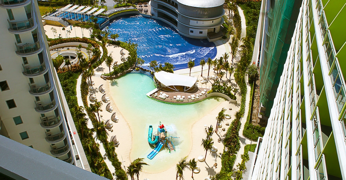 This unique place has a style all its own. A paradise to unwind within the city. Azure has a World Class, rich array of resort-type amenities, envisioned to be the first ever man made resort in the country designed by international style icon Paris Hilton. Perfect and conductive place for quick getaway and staycation with your family and friends. One of the best suite with amazing beach view at a great price. Spacious compared to hotel room.