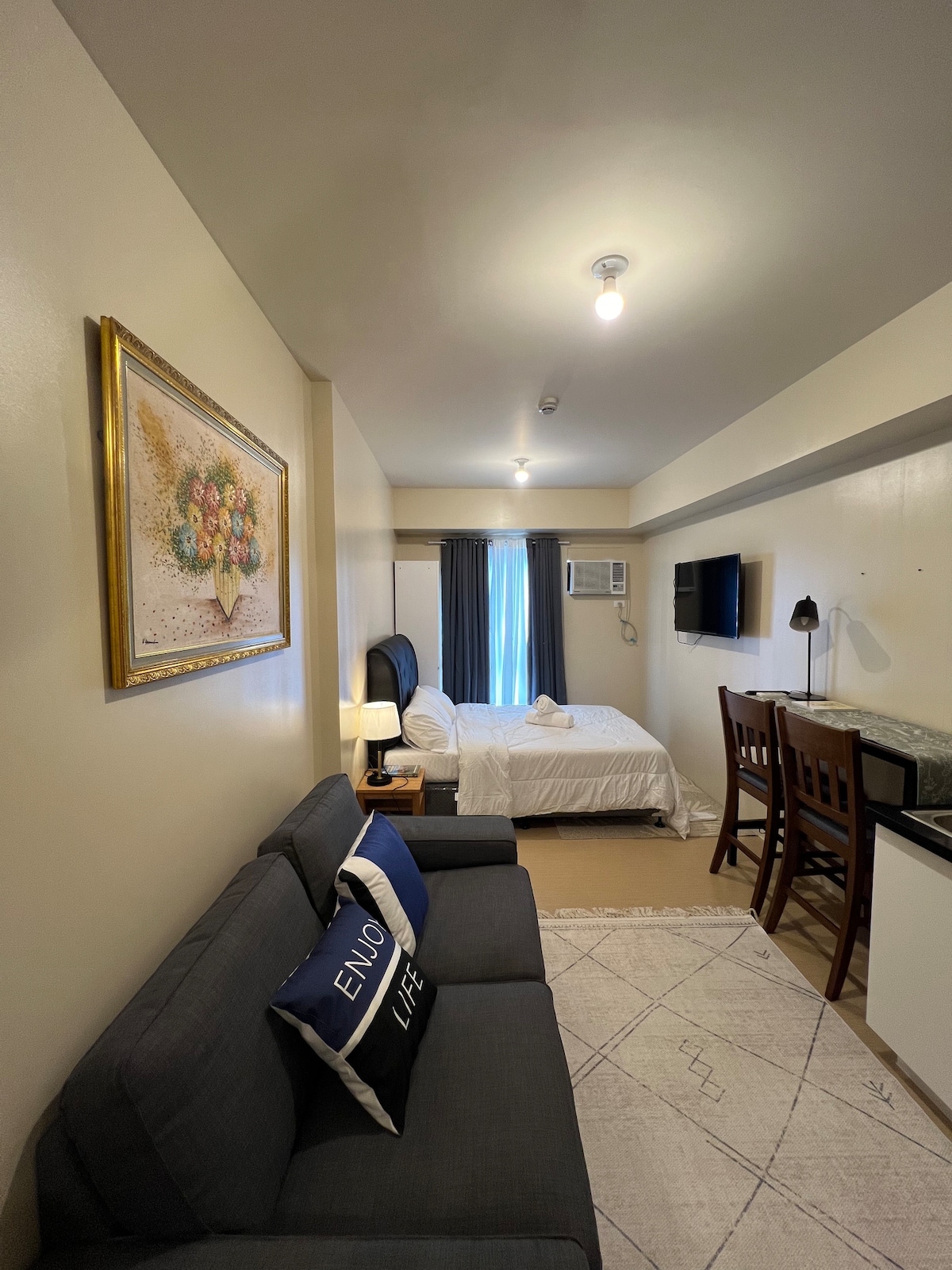 Experience modern comfort and elegance in this stylish high-rise condo at Aeon Towers, Davao's most prestigious address. Perfect for business travelers, couples, and leisure guests, this unit offers breathtaking panoramic views of the city and mountains. What You’ll Love: ✔ Spacious & Fully Furnished 1-bedroom unit ✔ Floor-to-ceiling windows for natural light & stunning cityscapes ✔ FAST WiFi & Smart TV for work & entertainment ✔ Balcony to enjoy the sunset or city lights ✔ Access to amenities
