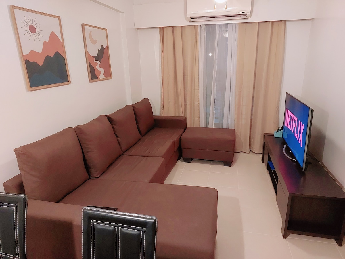 Welcome to our cozy Airbnb! 🏡 Min: 2 pax Max: 4 pax Check-in: 2 pm Check-out: 11 am Freebies: - Welcome Snack 🍪 - Coffee ☕ Amenities: - 1.5 hp Aircon ❄️ - Cookware, Utensils 🍳 - Sofa, TV with Netflix, Disney 📺 - Board Games - Shower Heater 🚿 - Washer Dryer NOT INCLUDED (can add w/minimal fee) - Adult & Kiddie Pool 🏊♂️ - Parking 🚗 -No Smoking 🚭 -No Parties 🎉 5-10 mins walk: - Convenience stores - Restaurants & Fastfoods - Malls Book now for a convenient and memorable stay! 🌟