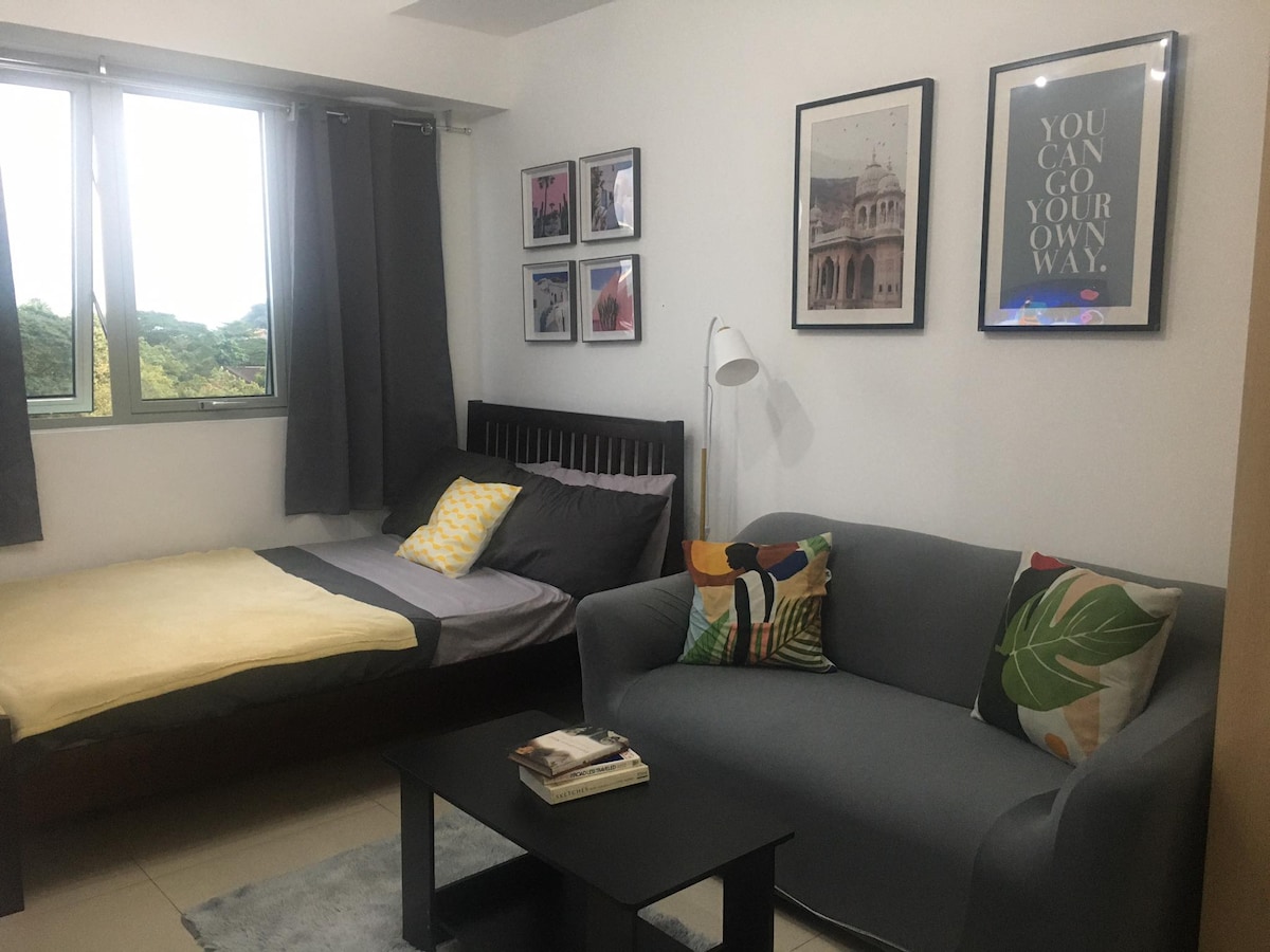 Kick back and relax in this calm, stylish space bauhaus-inspired studio unit with a city and mountain view that captures dreamy mornings and bed weather vibes. We pride ourselves in having a clean studio condo at an affordable price! Discounts for longer stay. 🅿️PARKING RATES: (Please inform ahead of time) 🚘 Car -₱250 to ₱300 🛵 Motor - ₱150 to ₱200 💦SWIMMING POOL DETAILS: Proper swimwear is required 🩱 Swimming Time: 8AM to 10PM ₱150/pax regular days ₱300/pax holidays