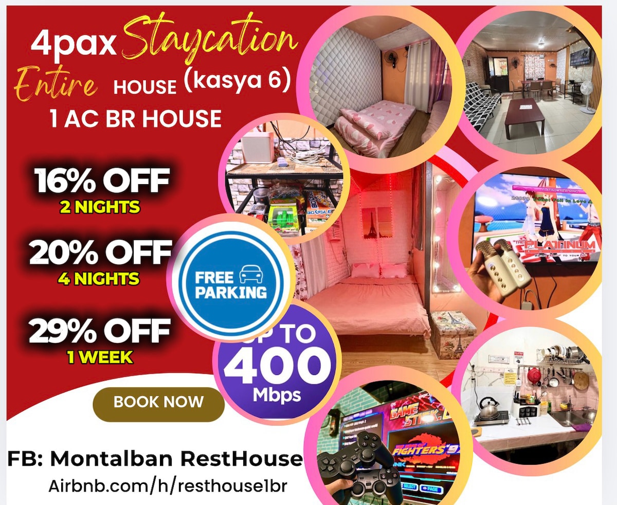 Enjoy at Villa Mina - the family, pet-friendly and stylish location for your next staycation or event! Enjoy: - Private Outdoor Tub! - Outdoor grill, bar table and chairs - Air-conditioning - Sofa & Loft-type Beds - Hot showers - Free parking for one car - Smart TVs with Netflix - Wi-Fi - Kitchen - Karaoke & board games We have more rooms! Inquire to find out 💙