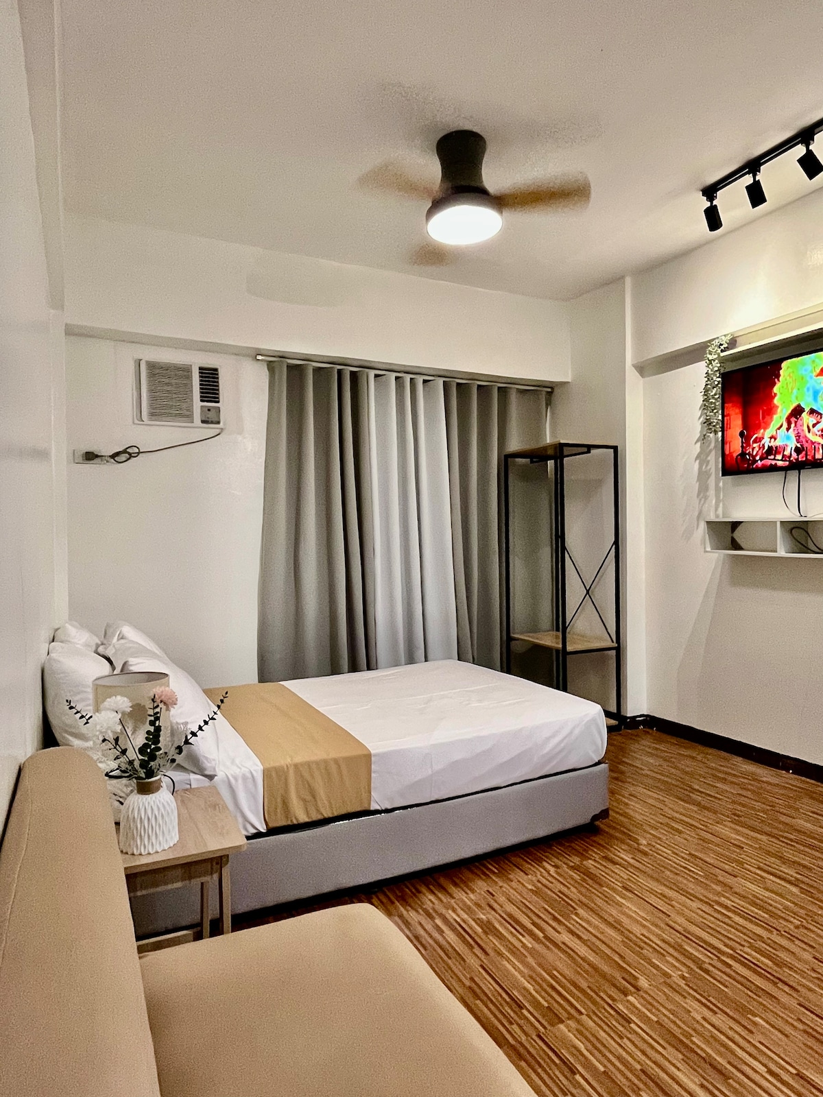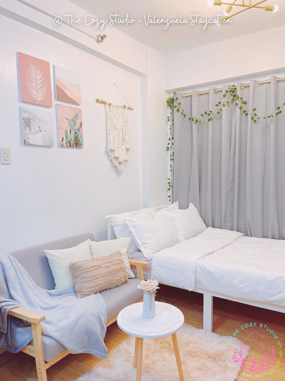 PLEASE READ BEFORE BOOKING 🩷 The Cozy Studio is a fully furnished unit with aesthetic vibes & soothing ambience. It is ideal for relaxation, romantic dates with your love one, movie night with your bestie or spending some time alone. It has fast wifi, perfect for Netflix and chill or K-Drama marathon. Get comfy with Fresh Bedsheets, Pillowcase and Blanket all night. Kitchen may be small but it has your basic needs for cooking. Bathroom is equipped with shower heater for relaxing shower.