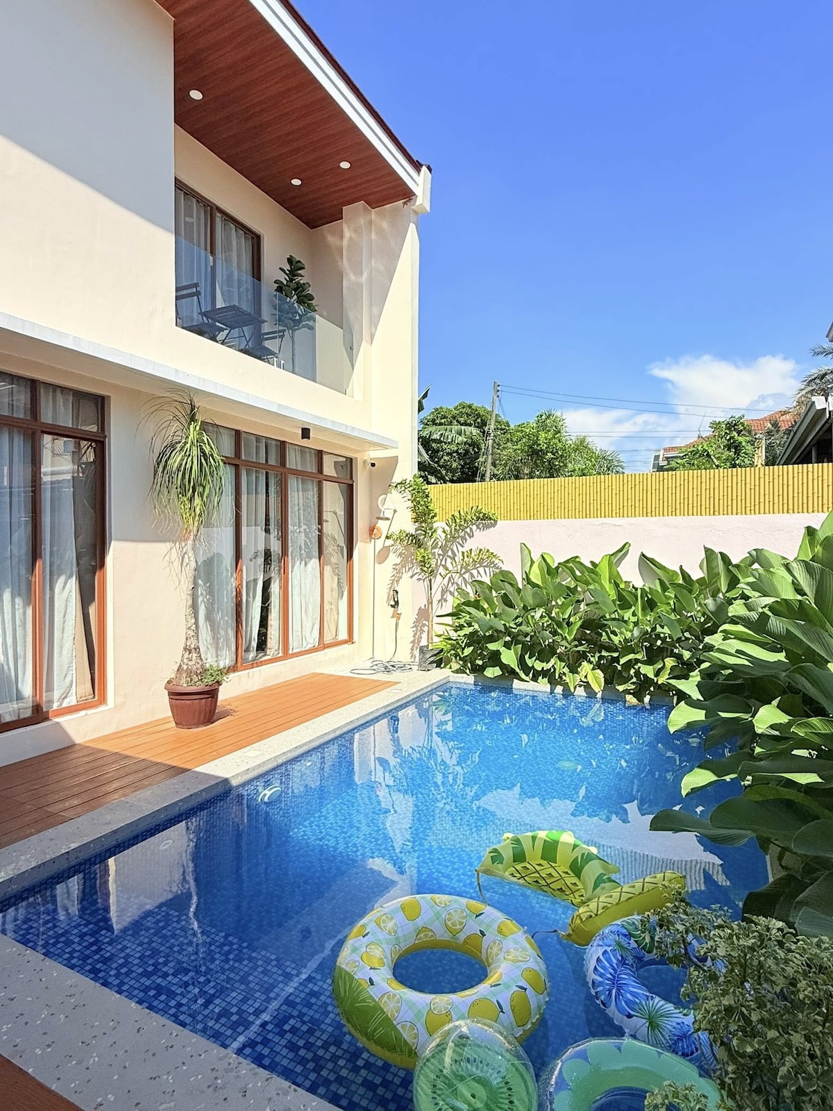 Enjoy a cozy stay! Perfect for families and small groups. Fully furnished house with 3 bedrooms (airconditioned, double beds (2 beds with pull-outs), 2 bathrooms (hot/cold showers), living room (55" Smart TV, WiFi with Netflix and toilet), & kitchen (fridge, rice cooker, utensils). Dining utensils (plates, glasses, mugs, spoons ad forks are sterilized before guests arrival)