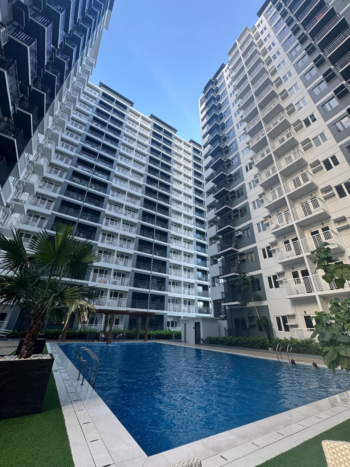 Welcome to your stylish retreat at the upscale Palladium in Iloilo city! This high end unit boast a unique, contemporary design that blends comfort and luxury. A perfect getaway for travelers seeking both relaxation and style. Enjoy the convenience of high-speed internet, essential for both leisure and business needs. Dive into relaxation with exclusive access to an infinity pool, ideal for unwinding under the sun. Keep up with your fitness routine in the fully equipped gym.
