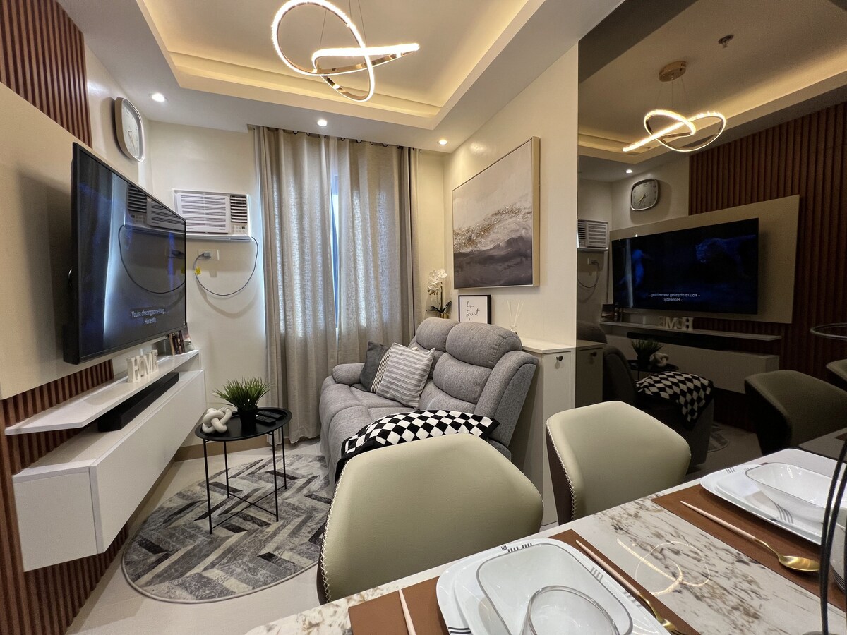 Welcome to Serene Stay—a modern, stylish condo right beside SM City Iloilo. 🌿 Designed with clean lines, warm lighting, and cozy elegance, this space features a glass-partitioned bedroom, plush beddings, and a fully equipped kitchen. Perfect for work or leisure, with dining space, relaxing sofa, and hotel-like comforts all in one chic retreat. 🏙️