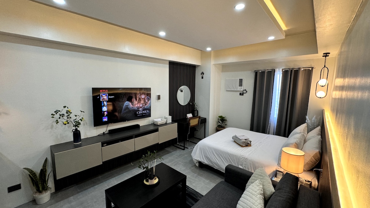 Welcome to Your Suite Escape—nestled right in the vibrant entertainment hub of Tomas Morato, Quezon City! Explore trendy cafés, indulge in local dining, or simply unwind after a long day with cozy movie nights on Disney+ and Netflix right in the comfort of your suite. Enjoy a thoughtfully designed studio with warm interiors, natural light, and hotel-style comforts. If this place is booked on your date, check out our other themed spot at airbnb.com/h/your-suite-escape-the-26th-at-tomas-morato