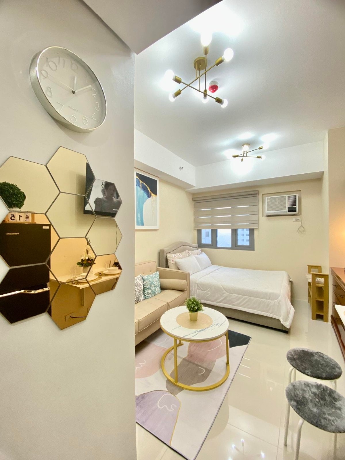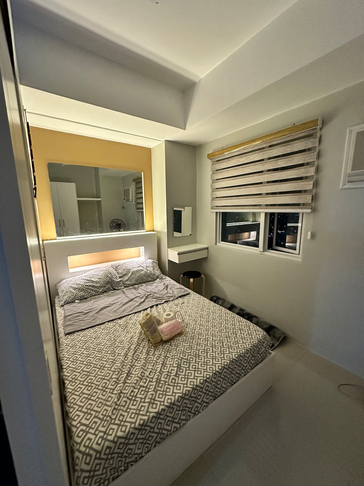 Welcome to Your Suite Escape—nestled right in the vibrant entertainment hub of Tomas Morato, Quezon City! Explore trendy cafés, indulge in local dining, or simply unwind after a long day with cozy movie nights on Disney+ and Netflix right in the comfort of your suite. Enjoy a thoughtfully designed studio with warm interiors, natural light, and hotel-style comforts. If this place is booked on your date, check out our other themed spot at airbnb.com/h/your-suite-escape-the-26th-at-tomas-morato