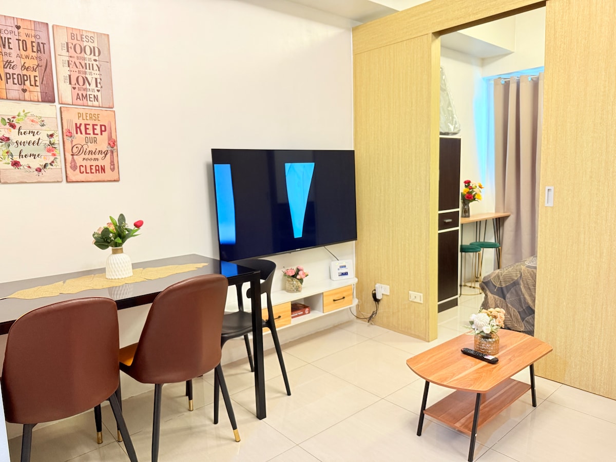Discover our spacious and bright 1BR end unit with balcony in the newly built Tower 4, Fern Residences. Designed with you in mind, our luxurious boutique-hotel style unit features a fully-equipped kitchen, hotel quality mattress and beddings, convertible coffee to dining table, washing machine and fast WiFi. It is ideal for short and extended stay travellers and for those who just want to have a relaxing staycation.