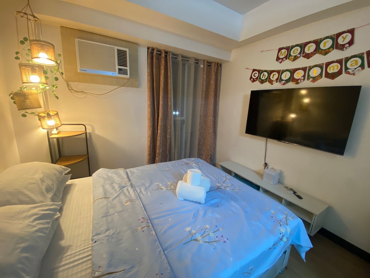 Luxurious Artsy 1 Bedroom unit. Walking distance to malls, 24hrs convenience stores, restaurants, groceries, and Lively Nightlife. ♛ 4k UHD TV + A/C + Workspace ♛ Netflix, Disney+, and Youtube access ♛ 400mbps upload and download speed! ♛ Board games are provided if you wanna have fun! ♛ fresh towels, and essentials provided ♛ Kitchenwares, cooking appliances, Microwave ♛ Coffee Machines ♛ Steam Iron, Hairdryer and Water Heater