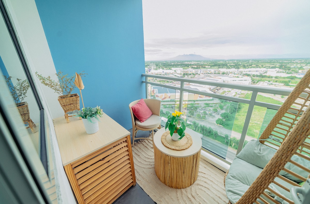 Welcome to The Chill Loft at Azure North – Your Stylish Escape in the Sky Step into comfort and style in this beautifully designed 2-bedroom unit on the 27th floor of Azure North. Perfect for families, barkadas, or couples who simply want more space to unwind, this serene loft offers the best of staycation living with breathtaking views of Mount Arayat and the resort-style pool amenities.