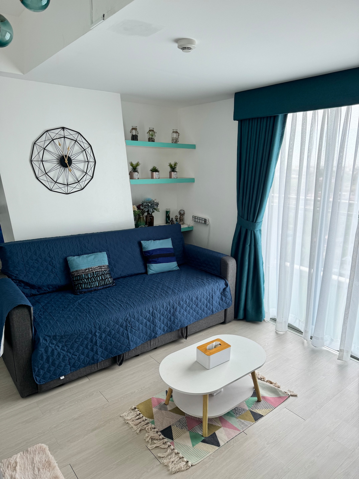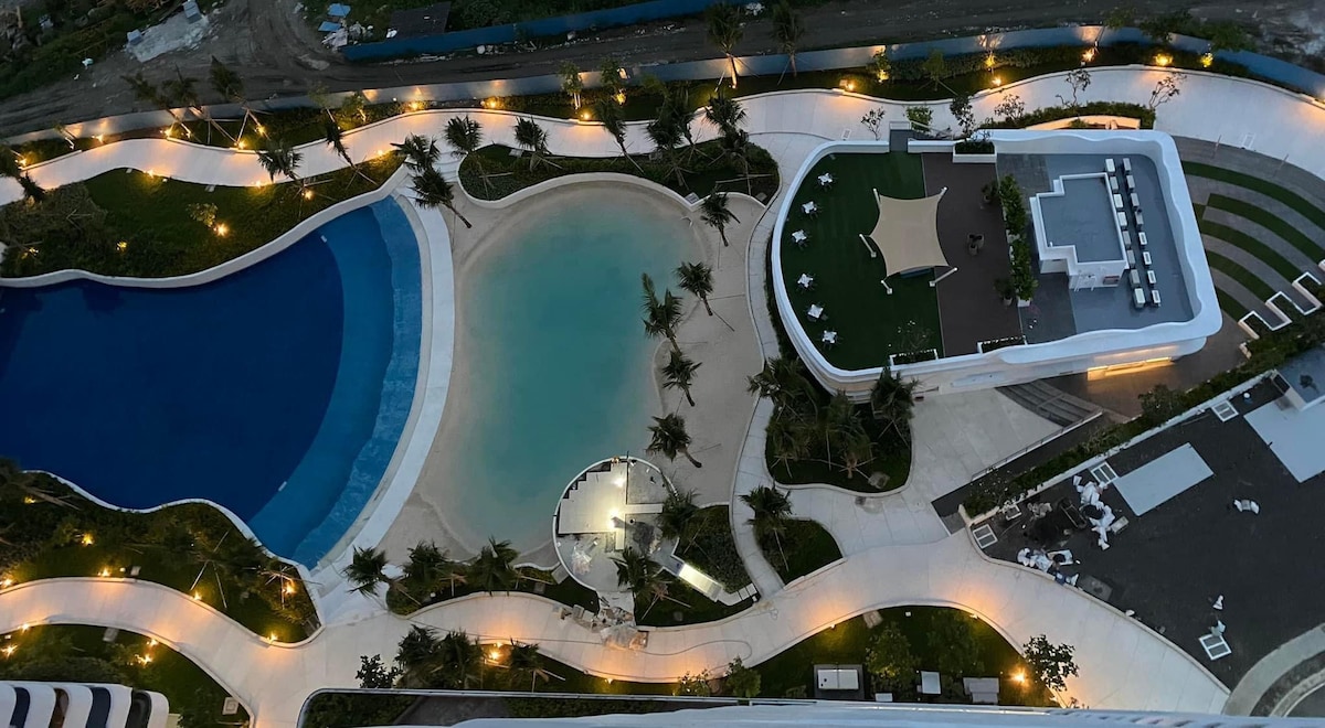 Enjoy cherished moments with family and friends at our centrally-located, cozy family retreat. Our home features a wrap-around balcony that overlooks a serene wave pool and a picturesque man-made beach, bringing the essence of a vacation to the heart of the city. Relax to the soothing sound of waves and take in breathtaking sunsets that paint the sky over the cityscape and distant mountain range. Experience this blissful escape at M’s Suite at Azure North.✨