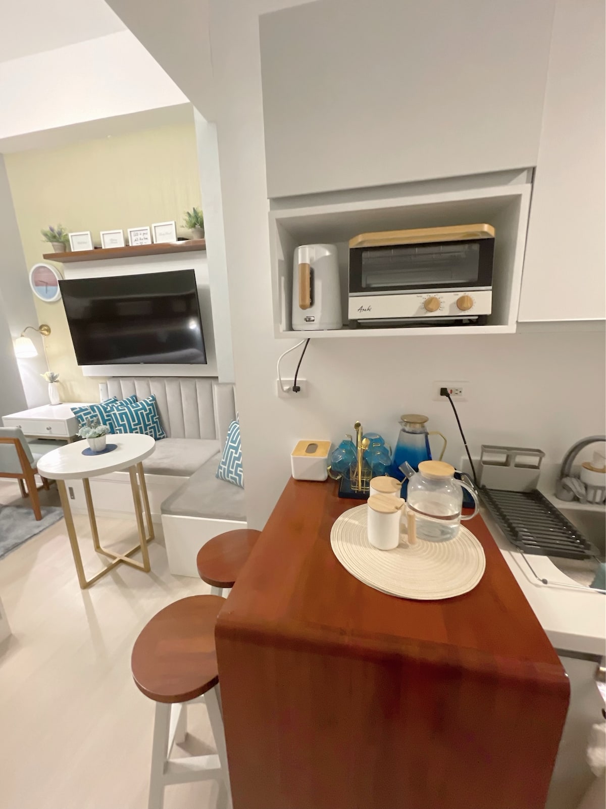 This condo unit provides the most relaxing and peaceful vibes that anyone is looking for as it is strategically positioned in front of mountain and beautiful scenery. Staying at the balcony will makel you feel the cool breeze and fresh air as if you are away from the city. Swimming pool with cabana, playground and garden are accessible and these can be viewed from the balcony and bedroom's window.