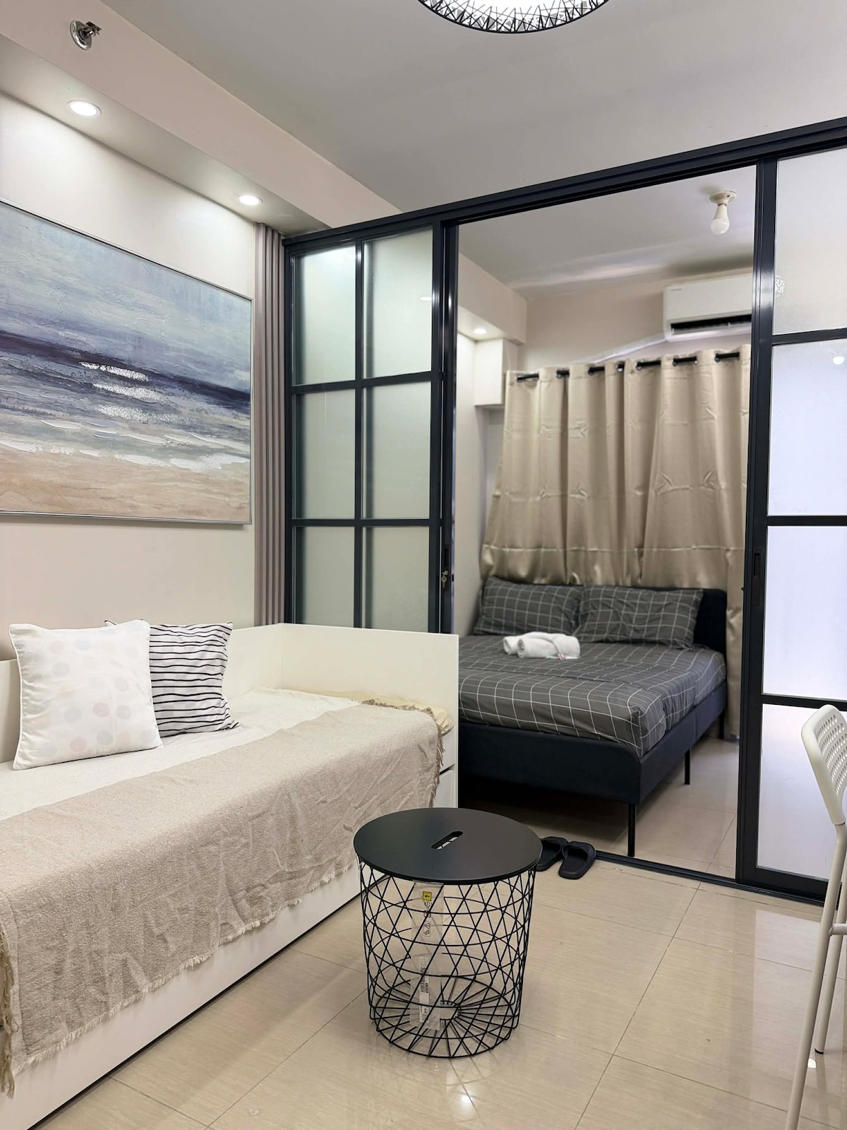 Opened Feb 12, 2026. Enjoy a stylish experience located at Shell Residences. Warm Japandi-style with a minimalist modern flare. 1BR near MOA and NAIA, thoughtfully curated with clean lines, soft neutrals, and natural wood tones. Features a cozy living area, ample seating, modern kitchenette, dining nook, and a hotel-style vanity. Calm, minimalist, and IG-worthy; perfect for travelers seeking comfort and quiet luxury. 100 percent of the cleaning fees goes to our two cleaners.