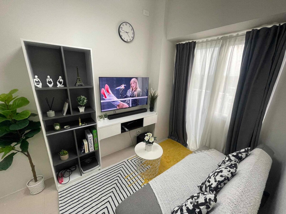 Experience style and convenience in this modern BGC studio! Just a 2-minute walk to Venice Canal Mall, it’s perfect for work and leisure. Enjoy a hidden pullout queen bed, an expanding table for dining or work, and an 84” projector for a cinematic experience. Steps from cafes, groceries, and restaurants, everything you need is within reach. Whether you're unwinding, exploring, or working remotely, this cozy retreat is the ideal staycation spot! 🎬🎮✨