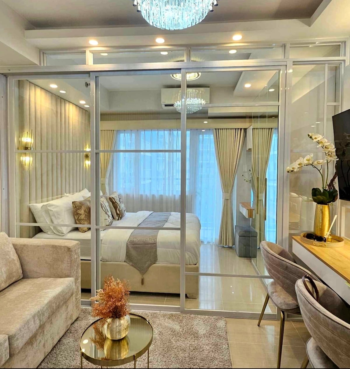 Indulge in luxury at Pearl Suite, Shell Residences, Pasay City. Whether a brief stay or a tranquil staycation, our suite blends affordability with a lavish ambiance. The condo offers swimming pools, a convenience store, and restaurants nearby, so your every need is met within arm's reach. Nestled in the heart of SM Mall of Asia Complex, steps away from Mall of Asia, IKEA, SMX Convention Center, MOA Arena, PICC, NAIA 3 and more. Your gateway to luxury and convenience awaits at Pearl Suite.