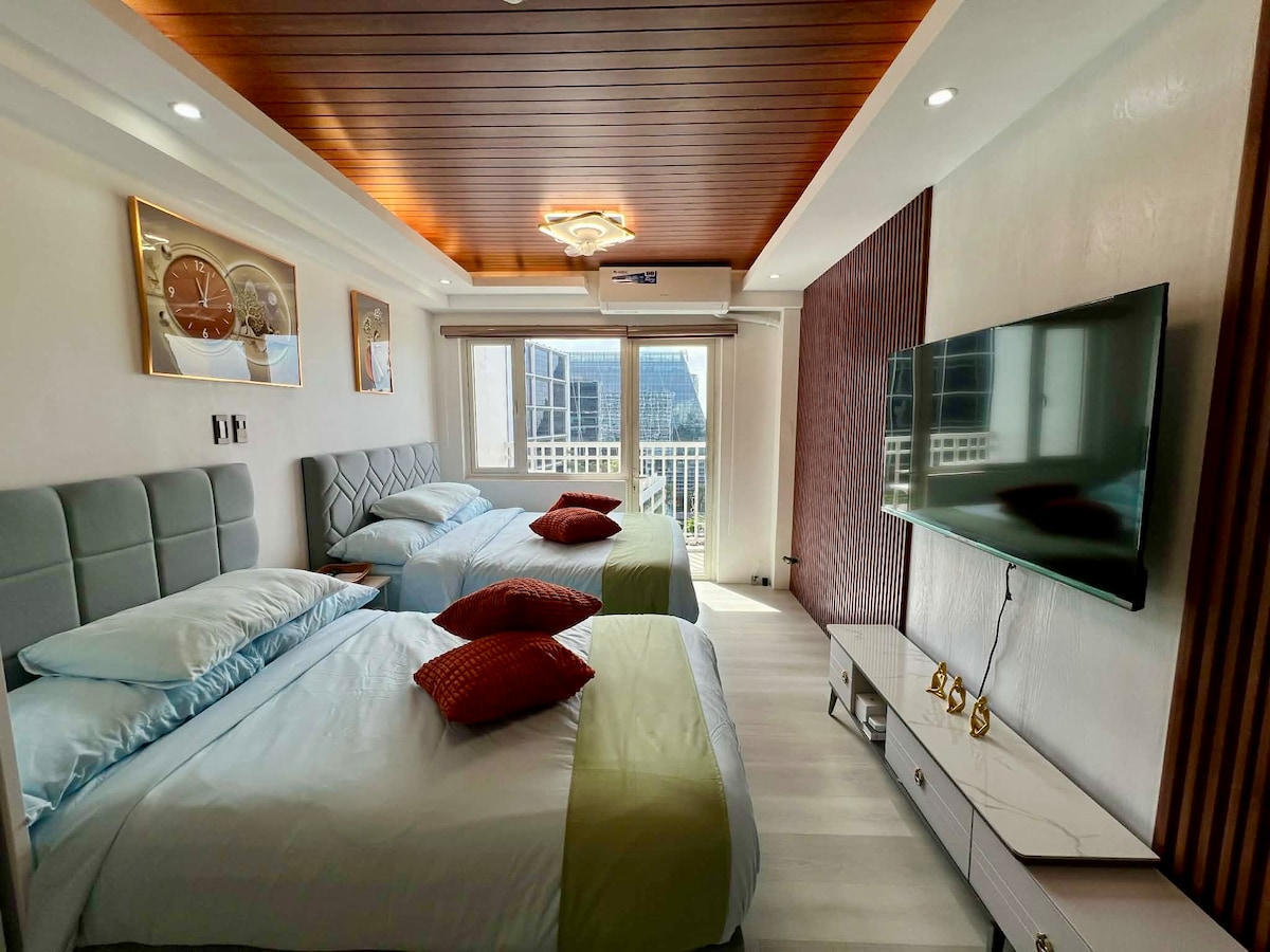 Experience our ultraluxe and cozy, 32sqm 1BR w/ balcony (pool view) in Shore 3 Residences, just in front of MOA and is just 4.5kms away from NAIA! With 1-65” SmartTV (living rm), 1-40"SmartTV (bedroom), 200mbps WIFI, Utube & Netflix, queensize bed, sofabed, ACs in both bedroom and living room areas and a Nespresso machine are just some of the things that we generously equipped this unit all for you to enjoy!