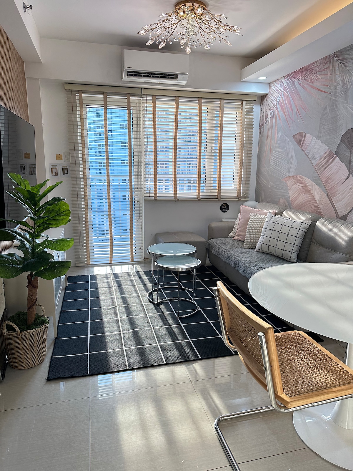 Welcome to your another new favorite getaway! A charming Rustic-Boho retreat that instantly became Guests' Favorite - now offers a new level of relaxation and comfort. A beautifully curated bedroom that merges Rustic-Boho charm with the exotic allure of Bali. This inviting retreat combines the warm, natural elements of rustic design with the vibrant, tropical essence of Balinese decor, creating a truly unique and tranquil haven. Location: Shore Residences, Tower D, MOA Pasay, Philippines