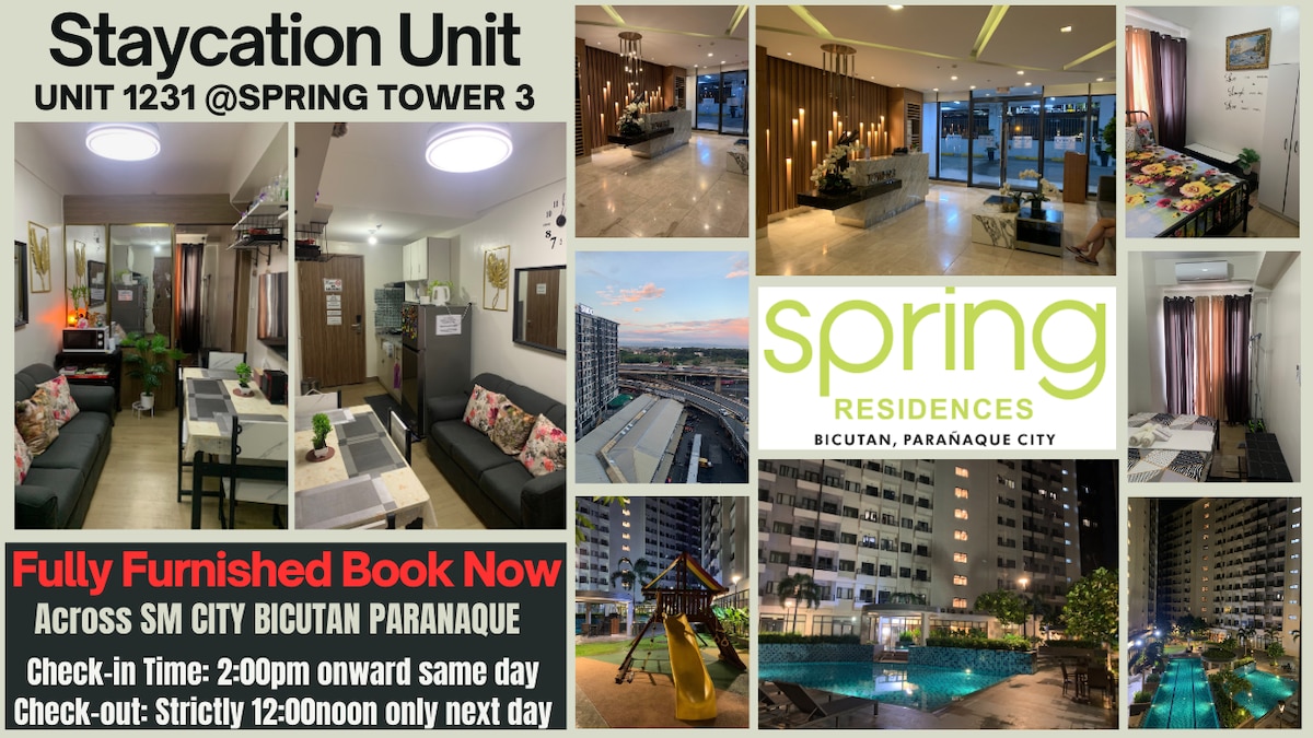 Your quick getaway in the Metro Manila. Located in Bicutan, Paranaque. Walking distance from SM Bicutan. 5 to 15 minutes drive to Airport, MOA and nearby places. The only condo - resort with man made white sand beach and huge wave pool in the Metro.