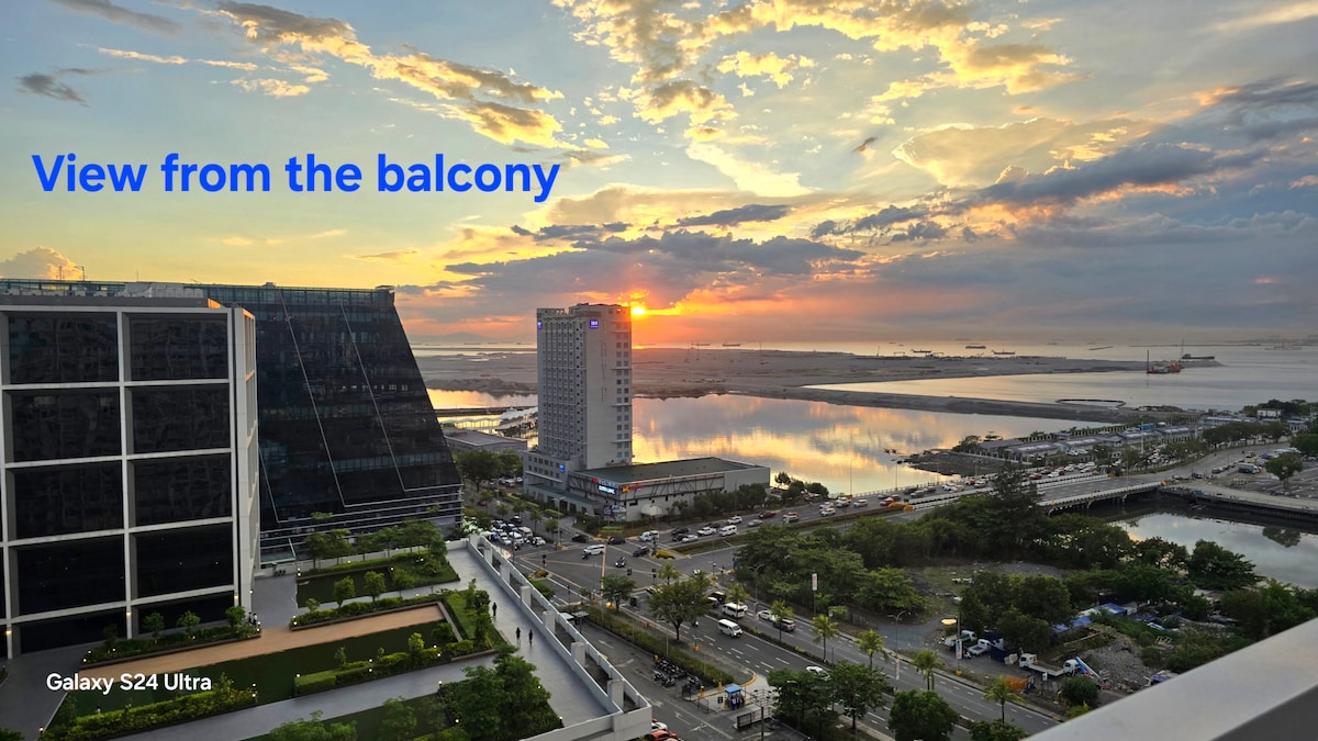 "OUR CONSISTENCY IS YOUR GUARANTEE." ✅ 11+YEARS HOSTING; 6000+ REVIEWS; 4.9+⭐ RATING Check it out👉www.airbnb.com/p/cleansafehomeph ✅ YOU ARE DEALING DIRECTLY WITH OWNER—get prompt help. ✅ NO AGENT FEE-NO HIDDEN CHARGES ✅ FREE PARKING. Reserved slot, same building, covered/secured 24-7. Shore 3--newest condominium at MOA ♥~12 mins from AIRPORT via NAIAX ♥QUEEN+PULLOUT+SOFA Bed♥Balcony♥PoolView ♥Wi-F♥SMART TV♥DUAL-AC♥UVC Disinfected♥Towels+Toiletries♥~10 min walk to MOA via Pacific Drive